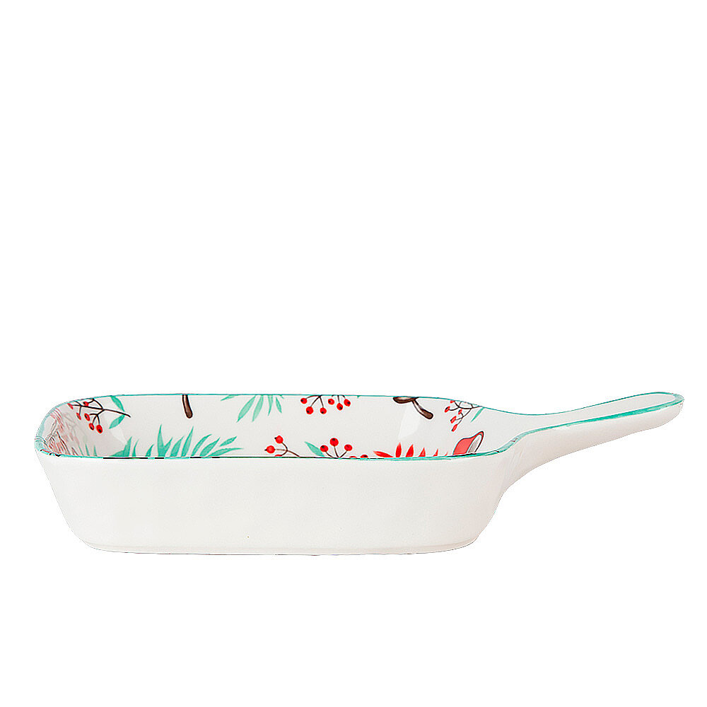 Блюдо сервировочное Nouvelle с ручкой "Kawaii Заяц", фарфор, квадратное, 22x16x3 см интересное: