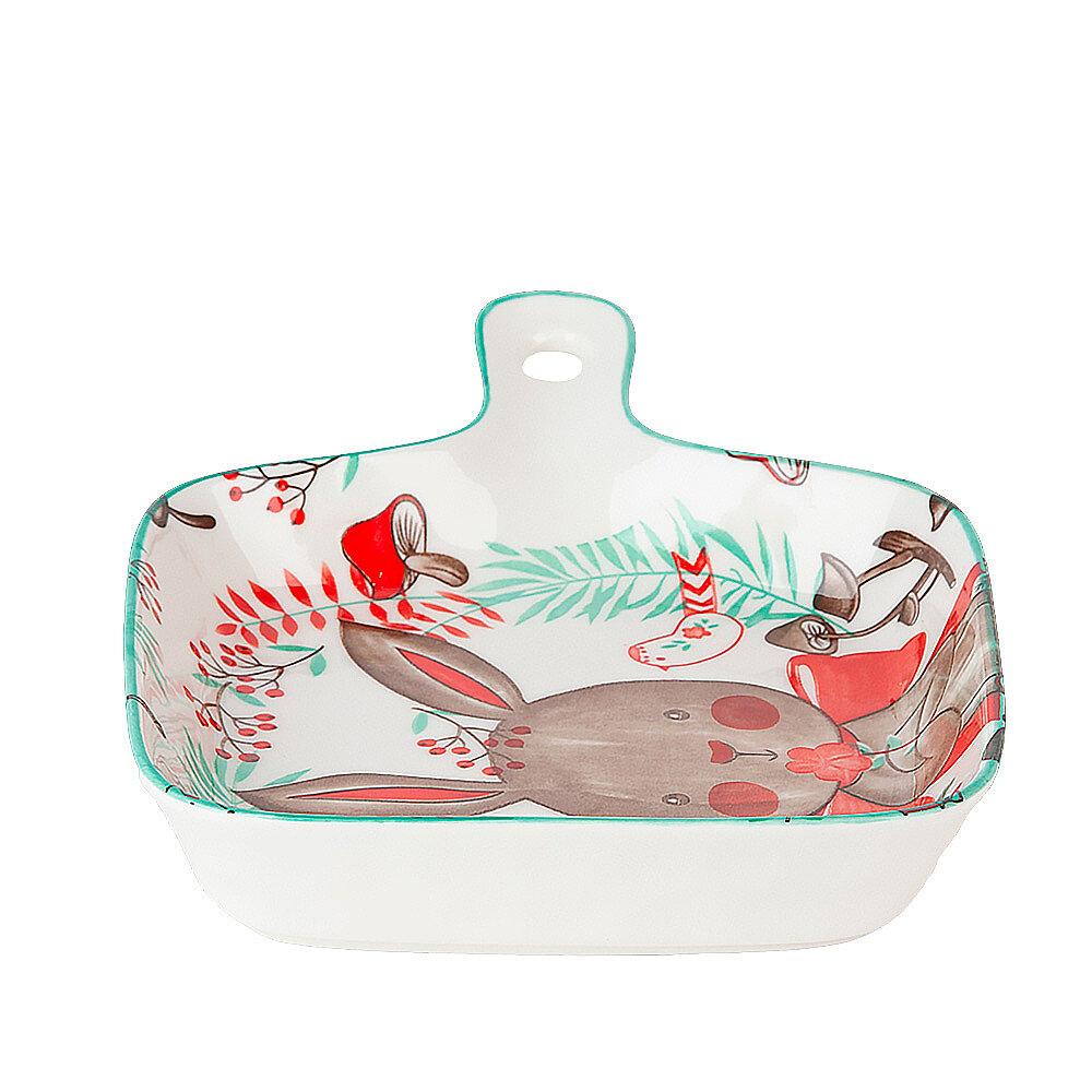 Купить Блюдо сервировочное Nouvelle с ручкой "Kawaii Заяц", фарфор, квадратное, 22x16x3 см
