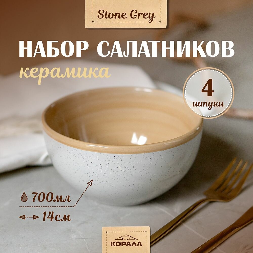 СохранитьНабор салатников 700мл/14см 4шт. керамика "Stone grey" миски, тарелки глубокие интересное: