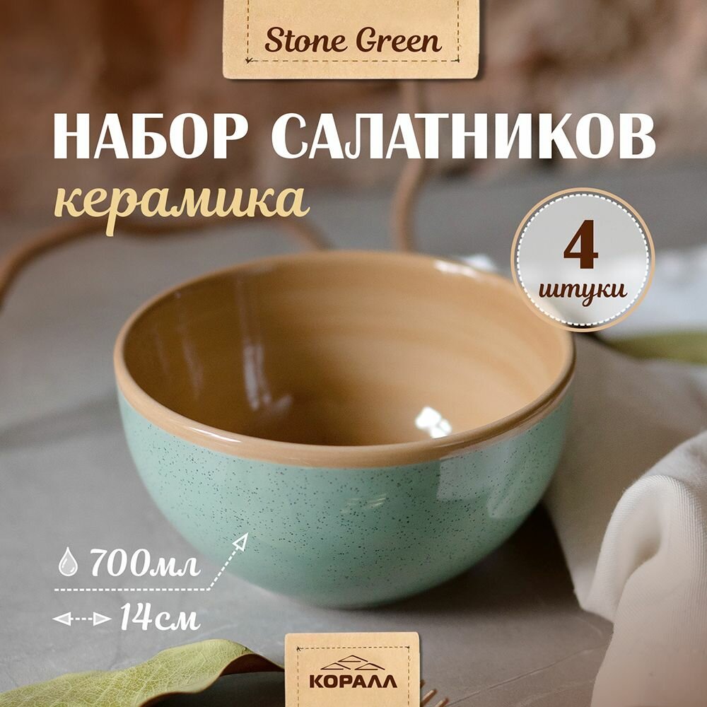 СохранитьНабор салатников 700мл/14 см 4шт керамика "Stone green" миски, тарелки глубокие интересное: