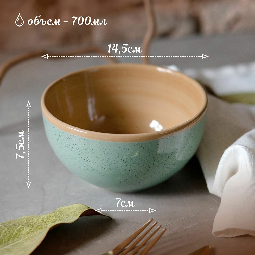Набор салатников 2шт 15см/750мл керамика "Costa green" Салатник миска боул тарелка глубокая для первых и вторых блюд на две персоны
