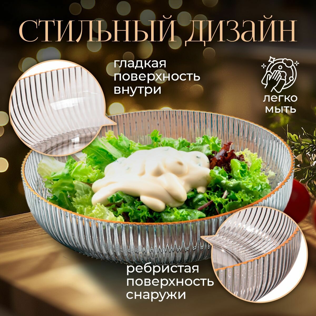 Салатник "Mea.Tech", имитация стекла, диаметр 25см, объем 0,5л, графитовый цвет интересное: