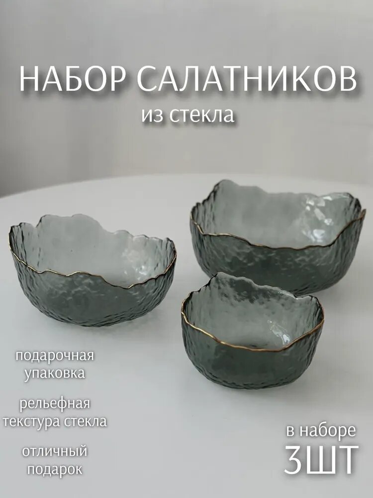 Набор стеклянных салатников 3шт Графит (1л, 500мл, 300мл) ТОиТО интересное: