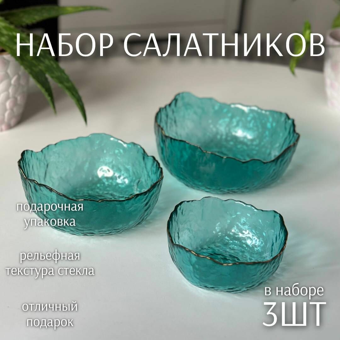 Набор стеклянных салатников 3шт Бирюза( 1л; 500мл; 300мл) ТОиТо интересное: