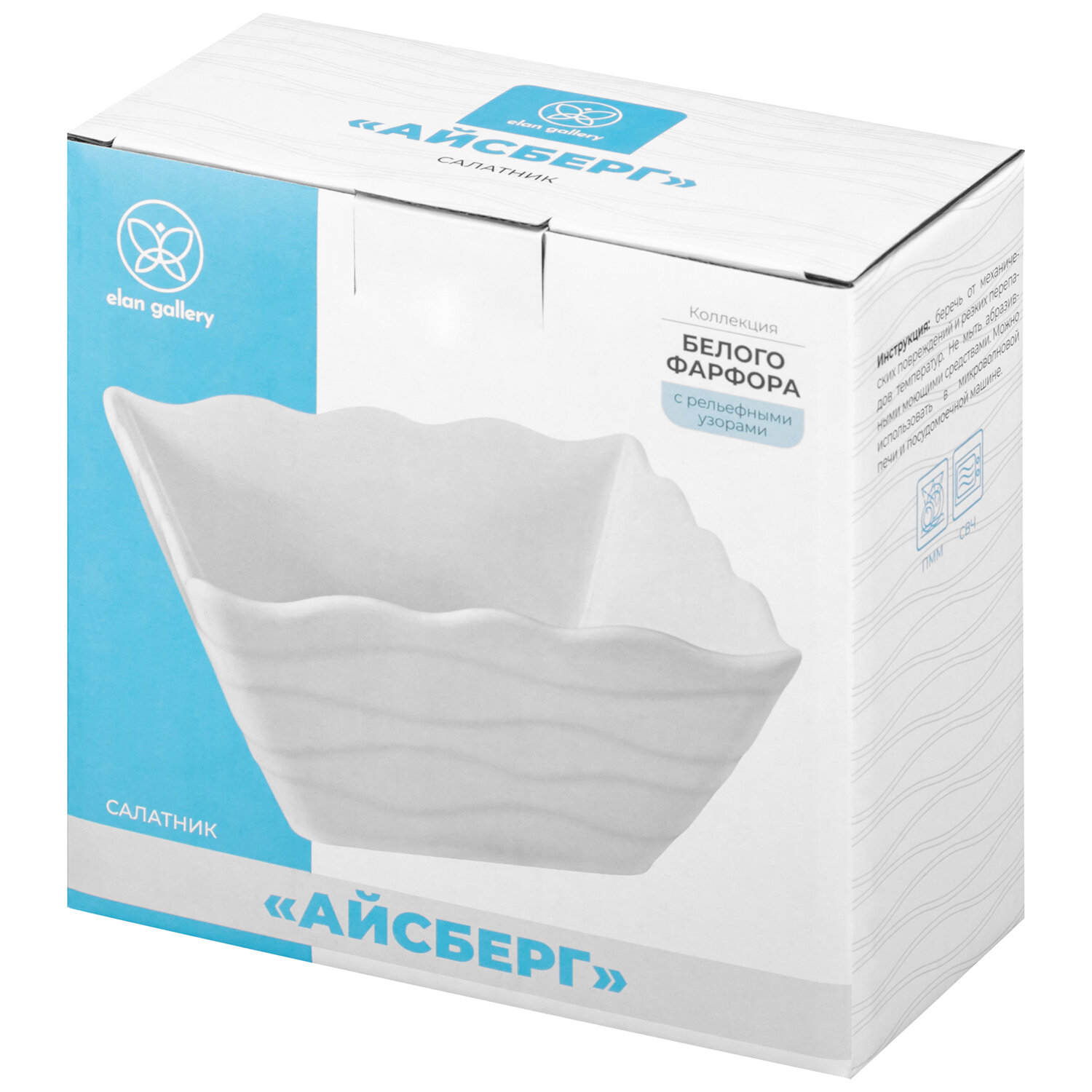 Салатник 1 л Elan Gallery Айсберг волны, 16х16х8 см, квадратный интересное:
