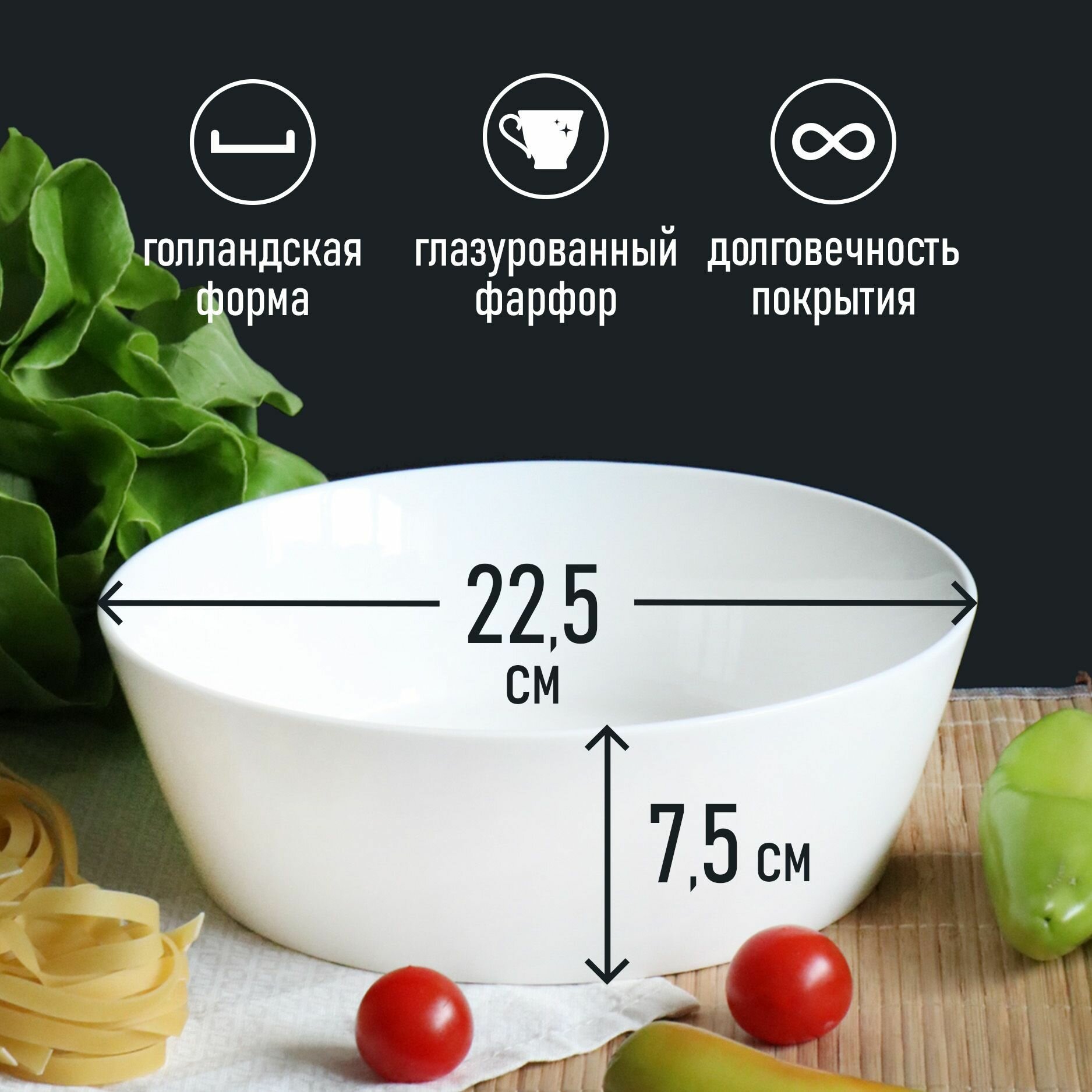 СохранитьСалатник большой белый салатница шубница круглая 1700 мл/23см Sola фарфор интересное: