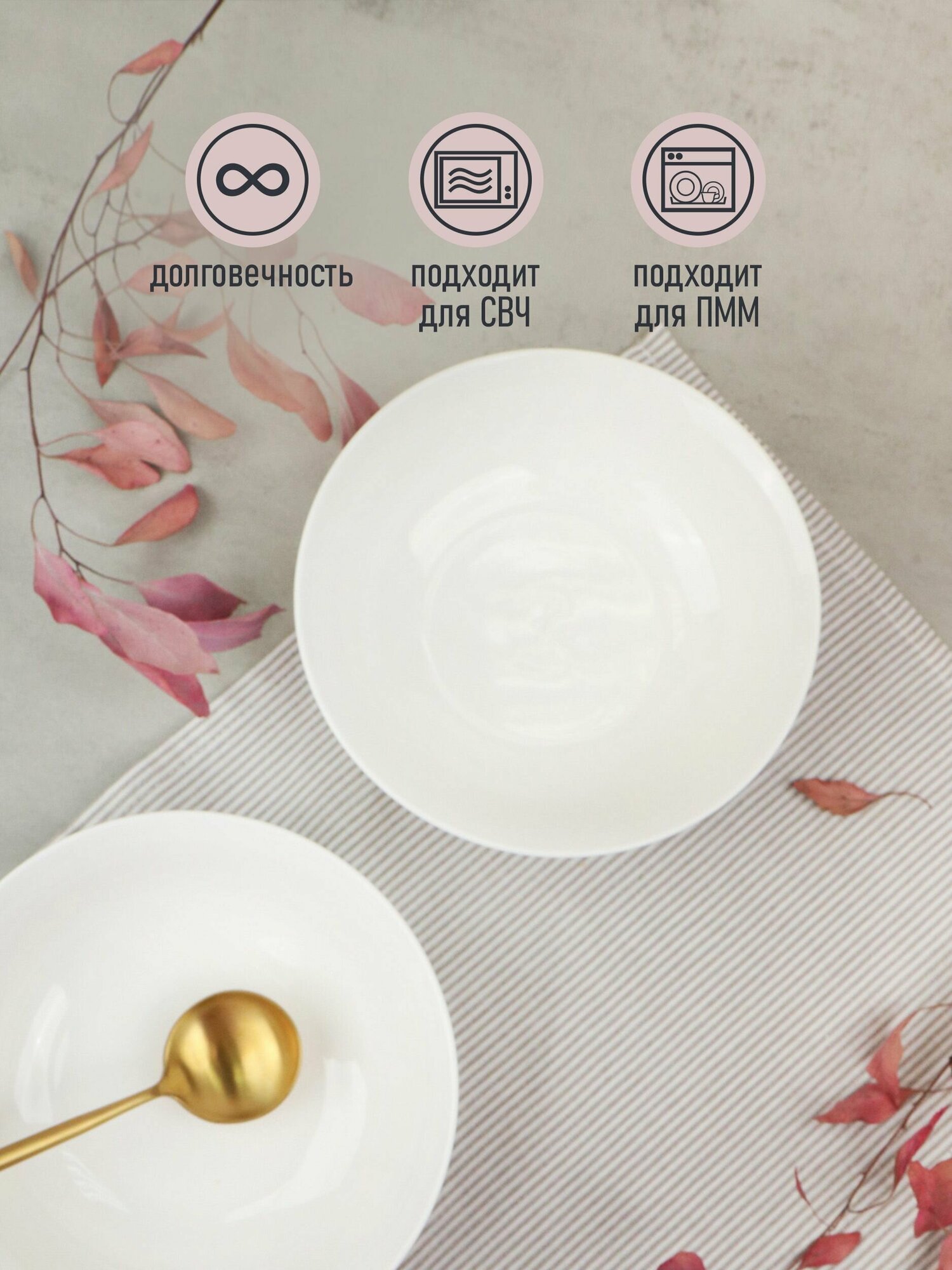 Салатники набор 2шт 1400мл/20см "Moon" фарфор, салатник большой белый круглый салатница шубница