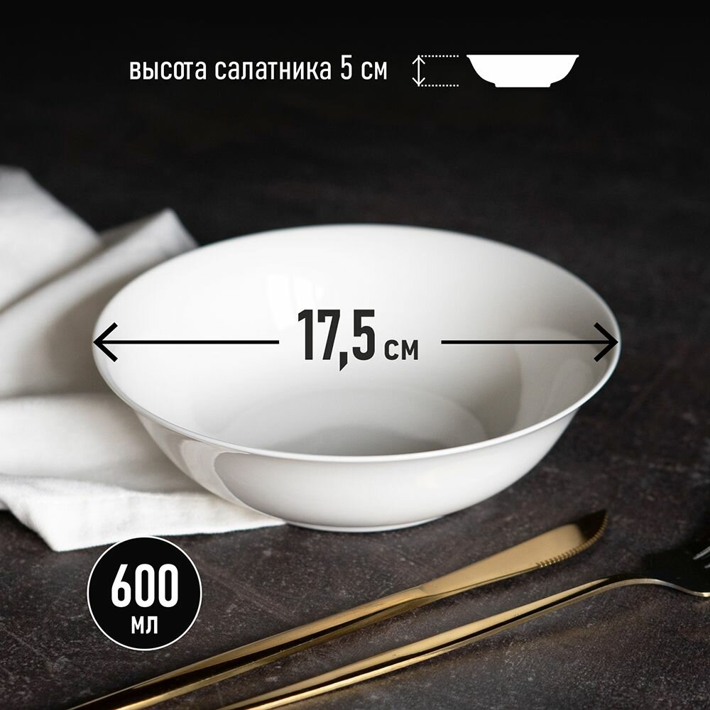 Купить Салатники набор 2шт 600мл/17,5 см "City" ресторанный фарфор. Белые круглые миски конфетницы салатницы, тарелки глубокие