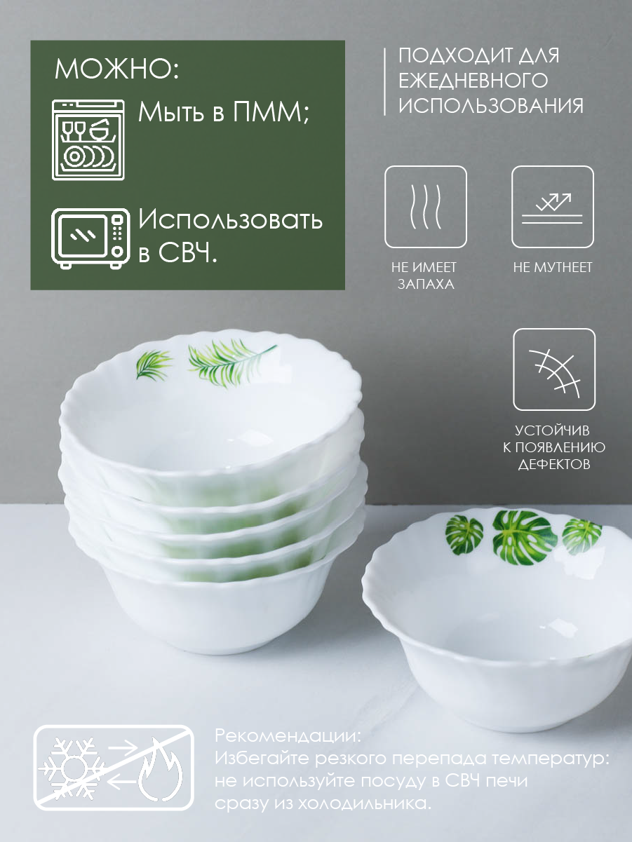Набор салатников стеклокерамика 6 шт 480 мл Монстера