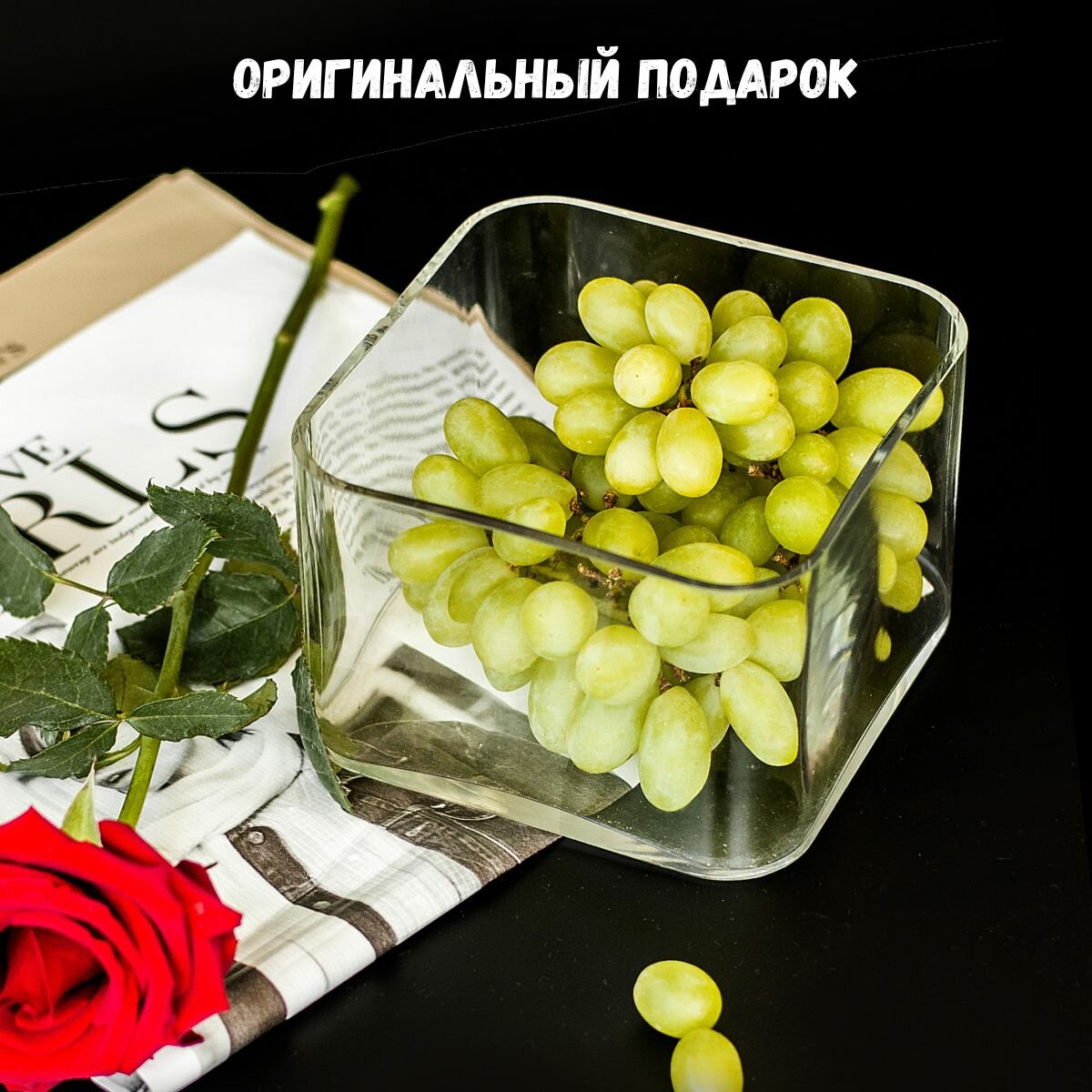 Ваза TCS, для конфет, квадратная, стекло, прозрачная, подарок интересное: