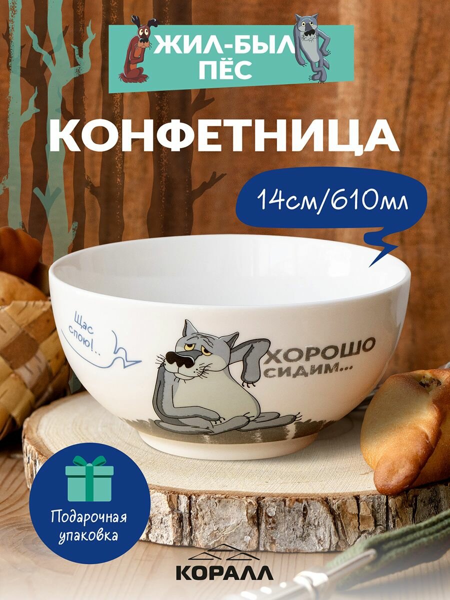 Конфетница/ салатник/ миска в подарочной упаковке 610мл/14см "Жил-был пес!" Коралл. интересное: