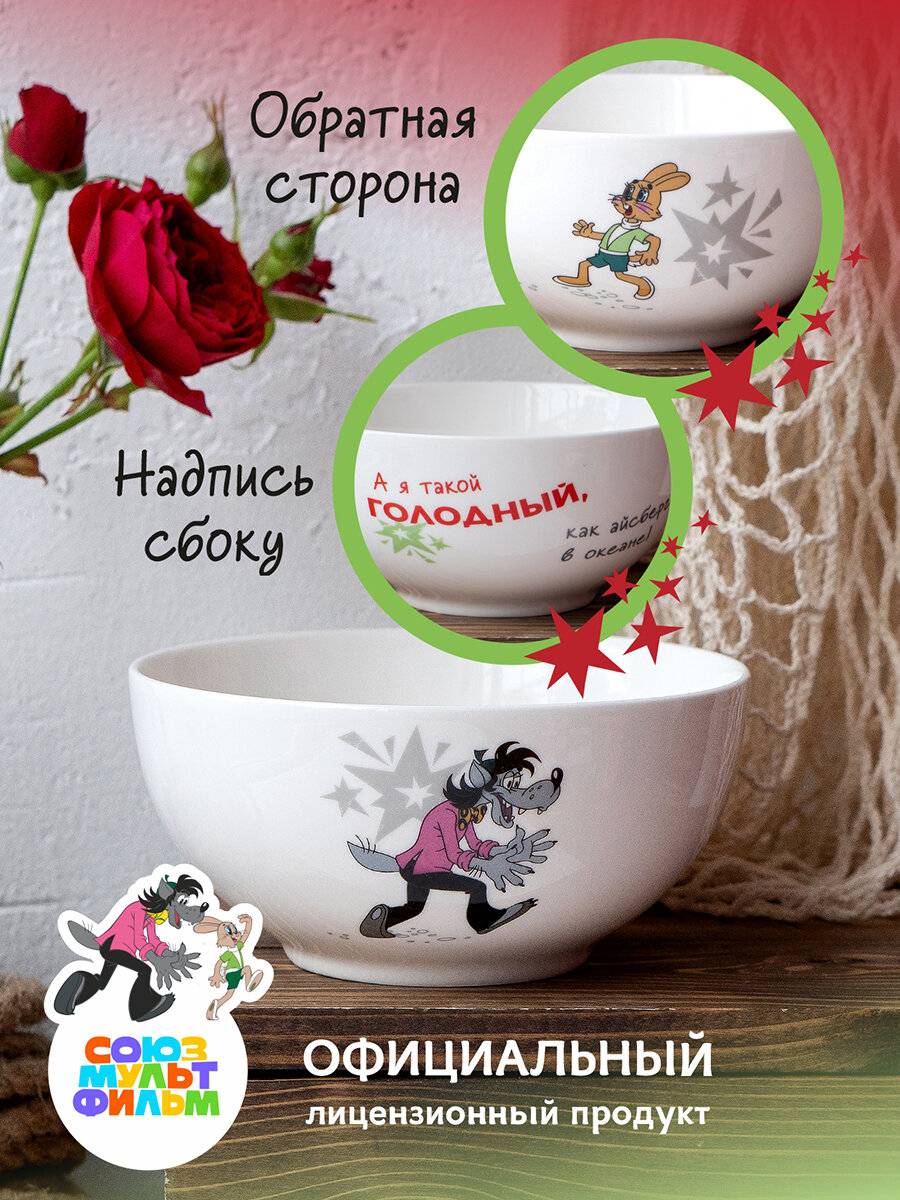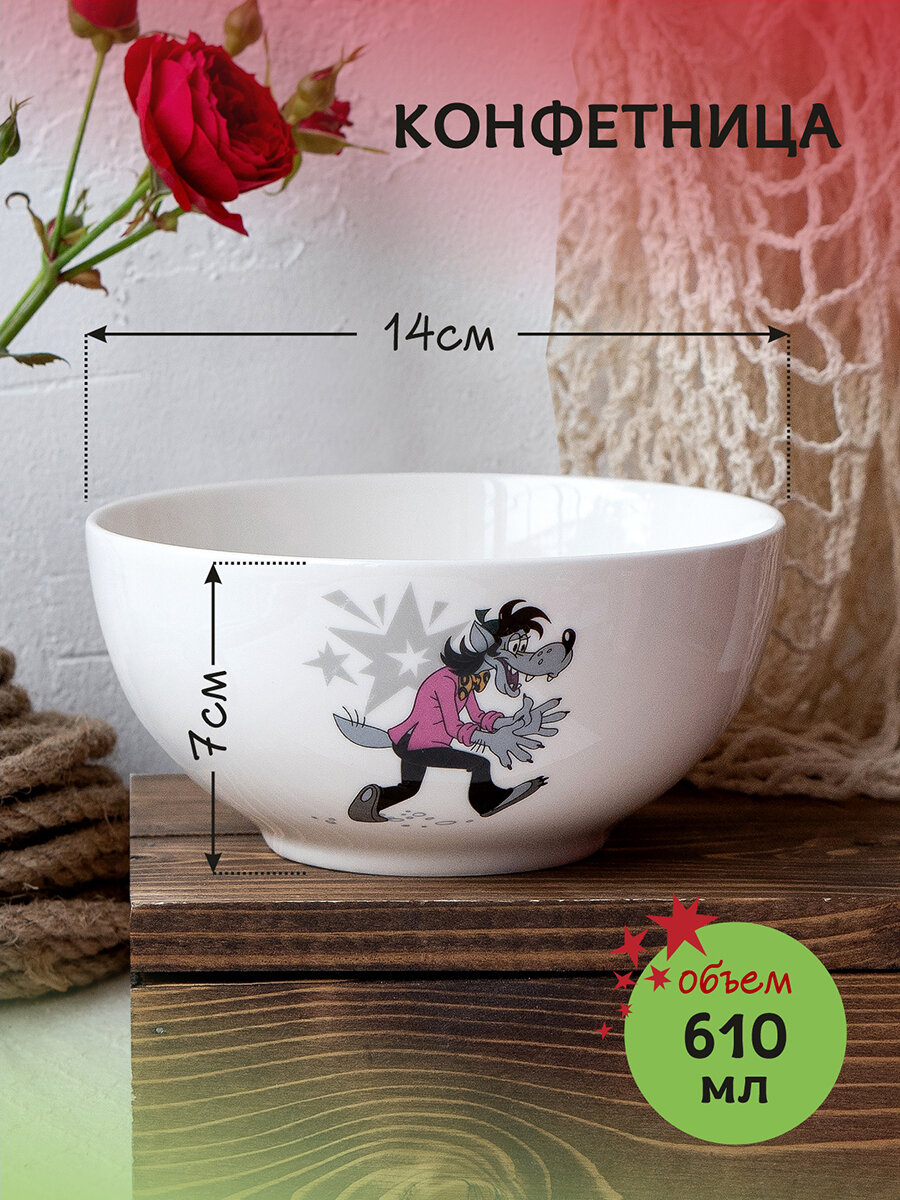 Конфетница/ салатник/ миска в подарочной упаковке 610мл/14см "Ну, погоди!" Коралл. интересное: