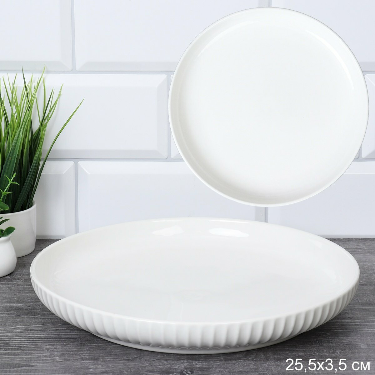Купить Блюдо для СВЧ и посудомоечной машины, 1 штука, белый цвет, диаметр 25,5 см