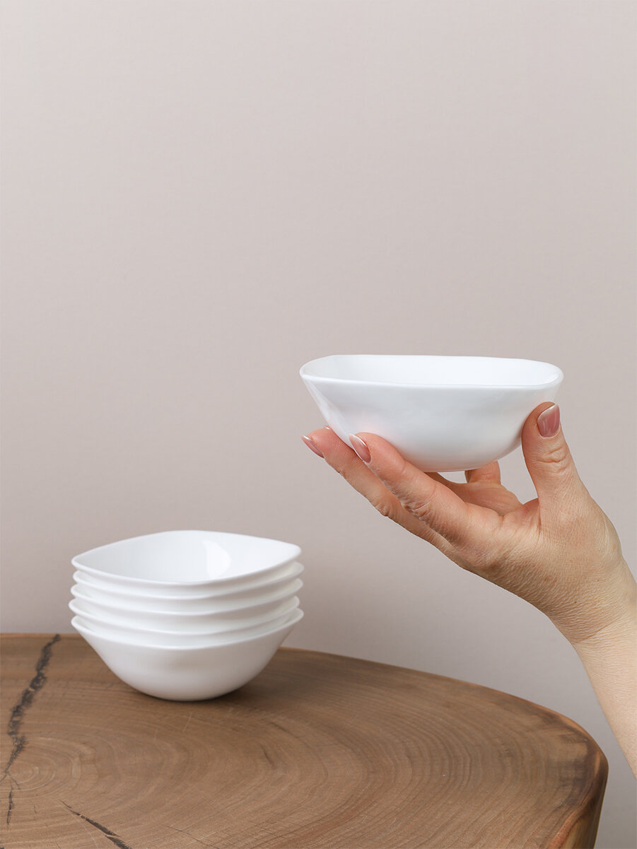 Купить Салатник квадратный белый небольшой 250 мл-6 штук/Набор порционных салатников стеклокерамика