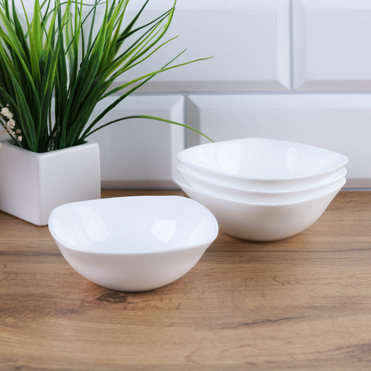 Салатник набор 4 шт 350 мл Белые квадратные