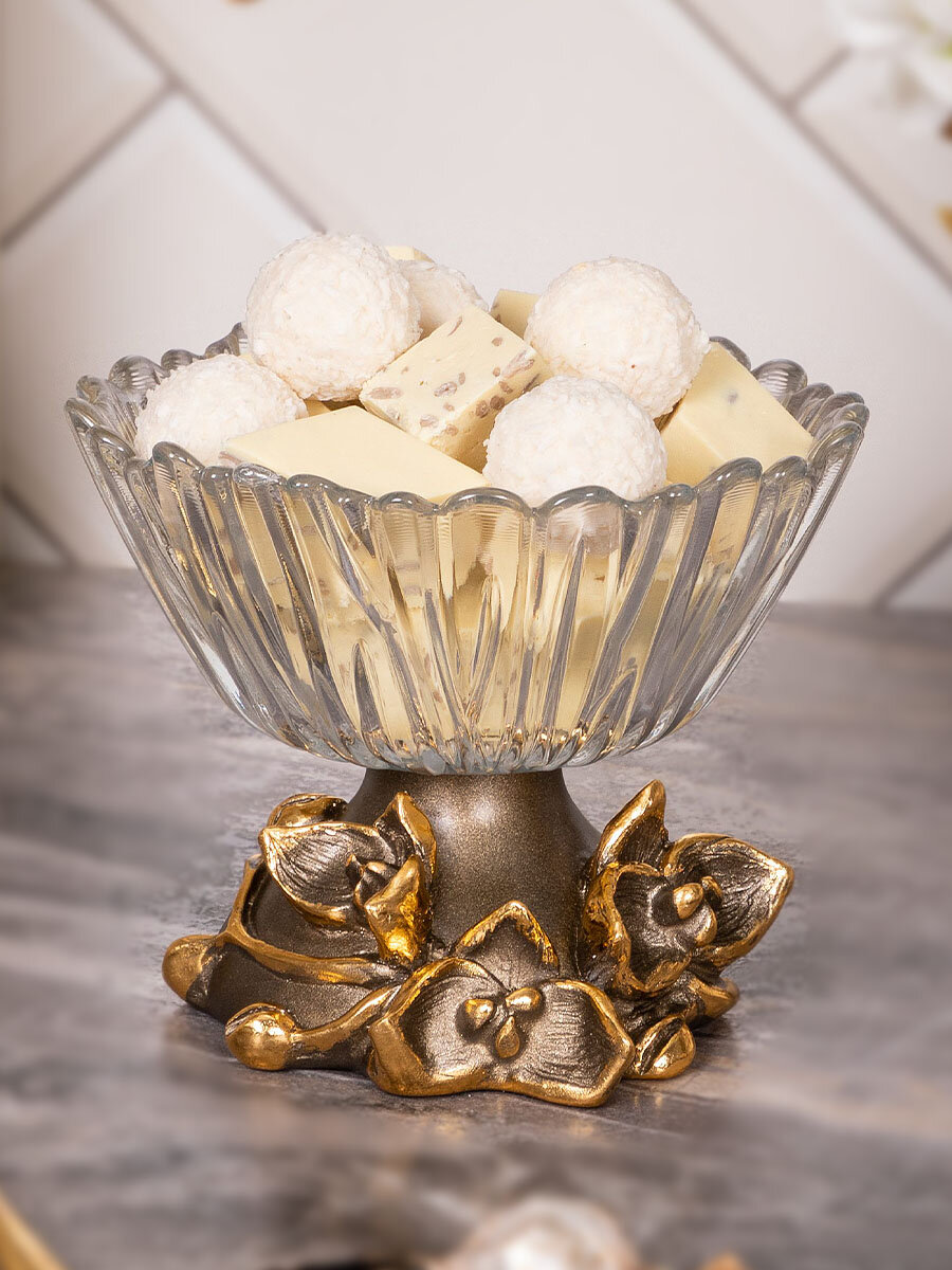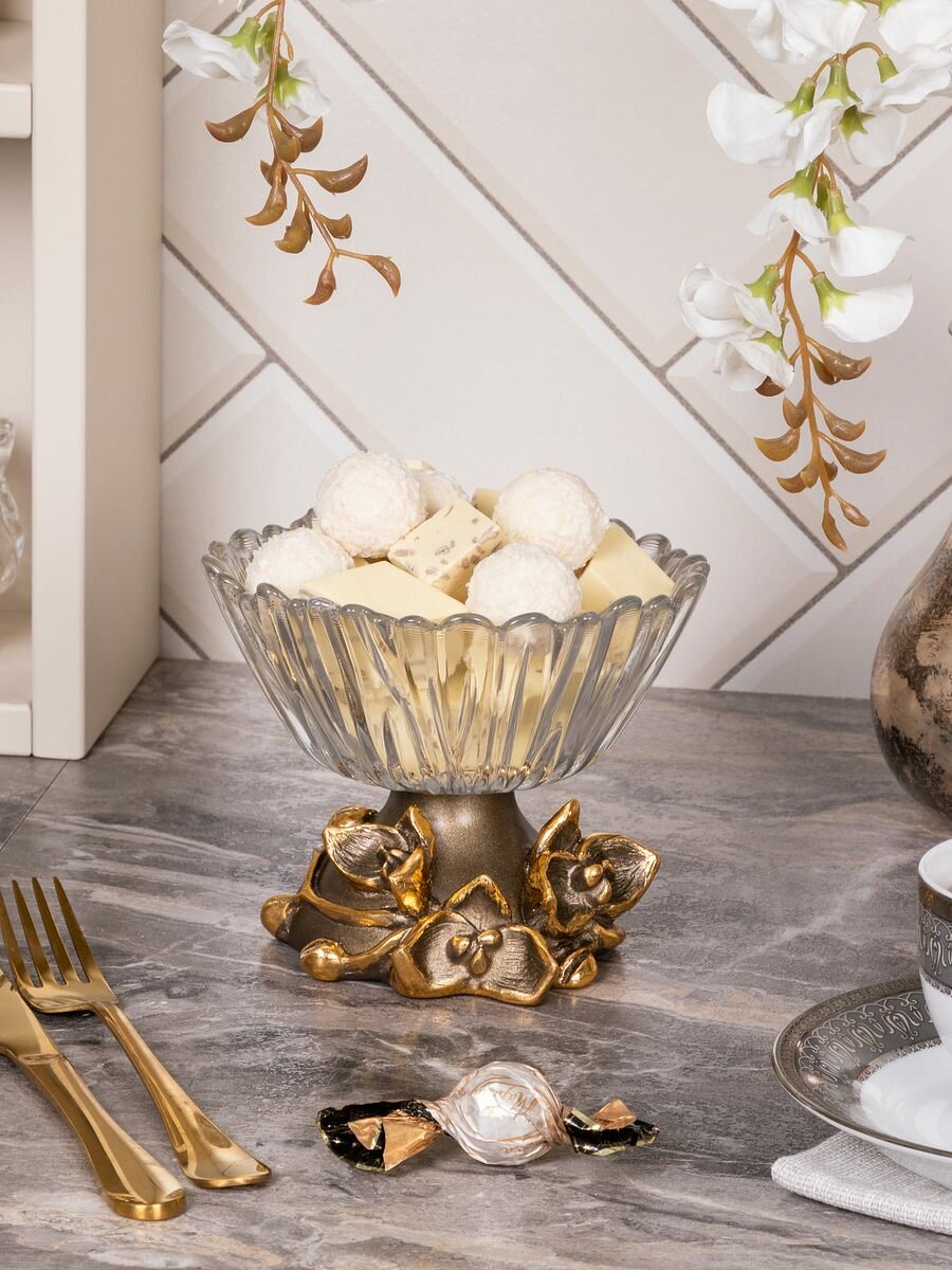 Фруктовница-конфетница из мрамора и стекла на ножке BOGACHO Заветное желание