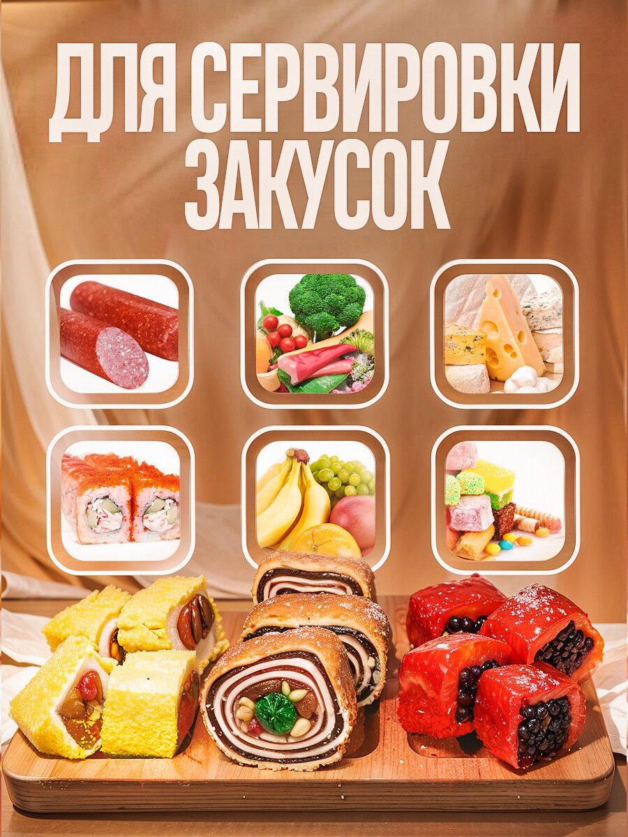Менажница деревянная, доска для подачи 31x17см поднос тарелка для дома