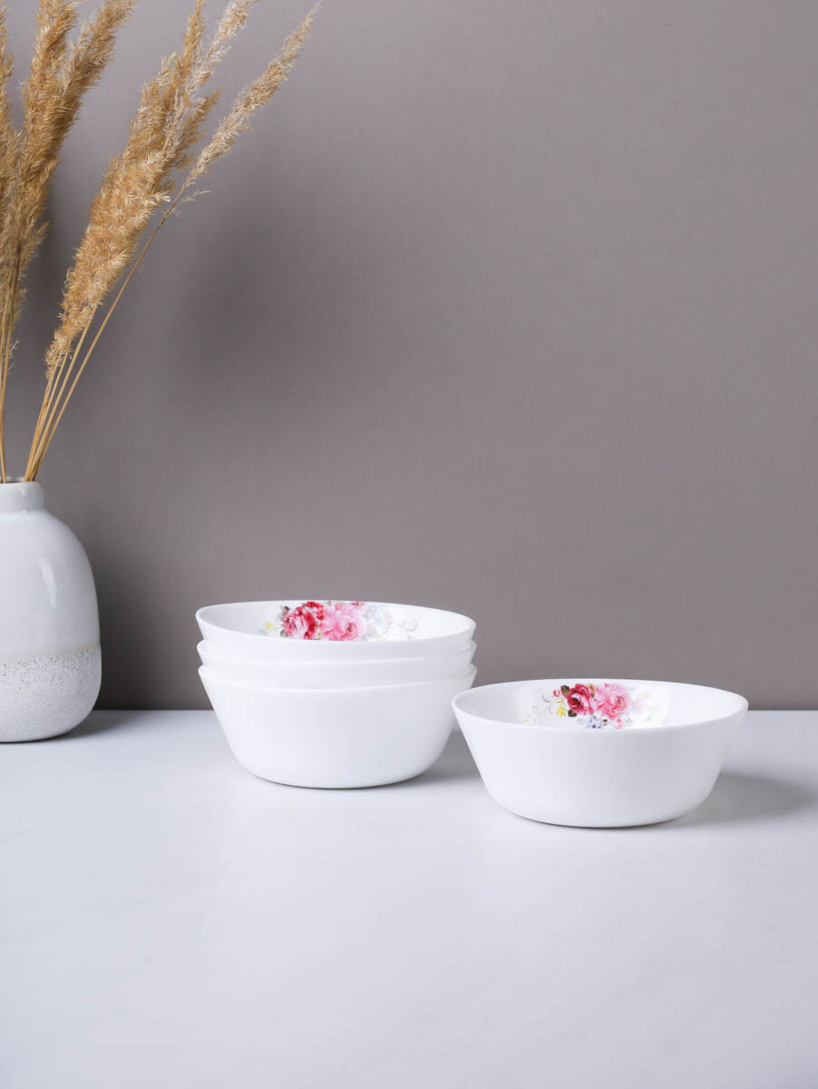 Купить Салатники WHITE LILY "Розовая композиция", стеклокерамика, 250мл, набор 4шт