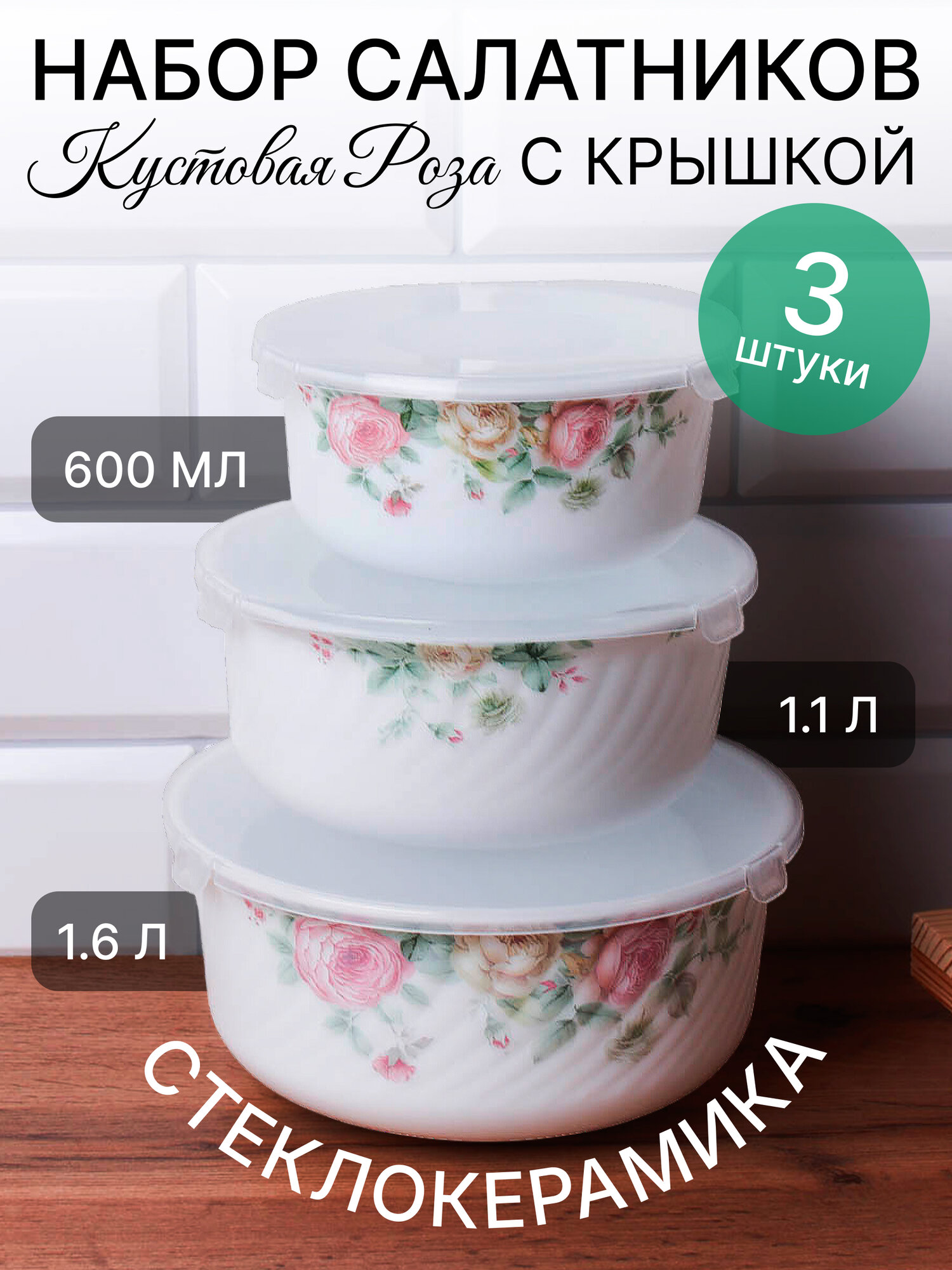 Набор салатников с крышкой WHITE LILY "Кустовая роза" 3 предмета интересное:
