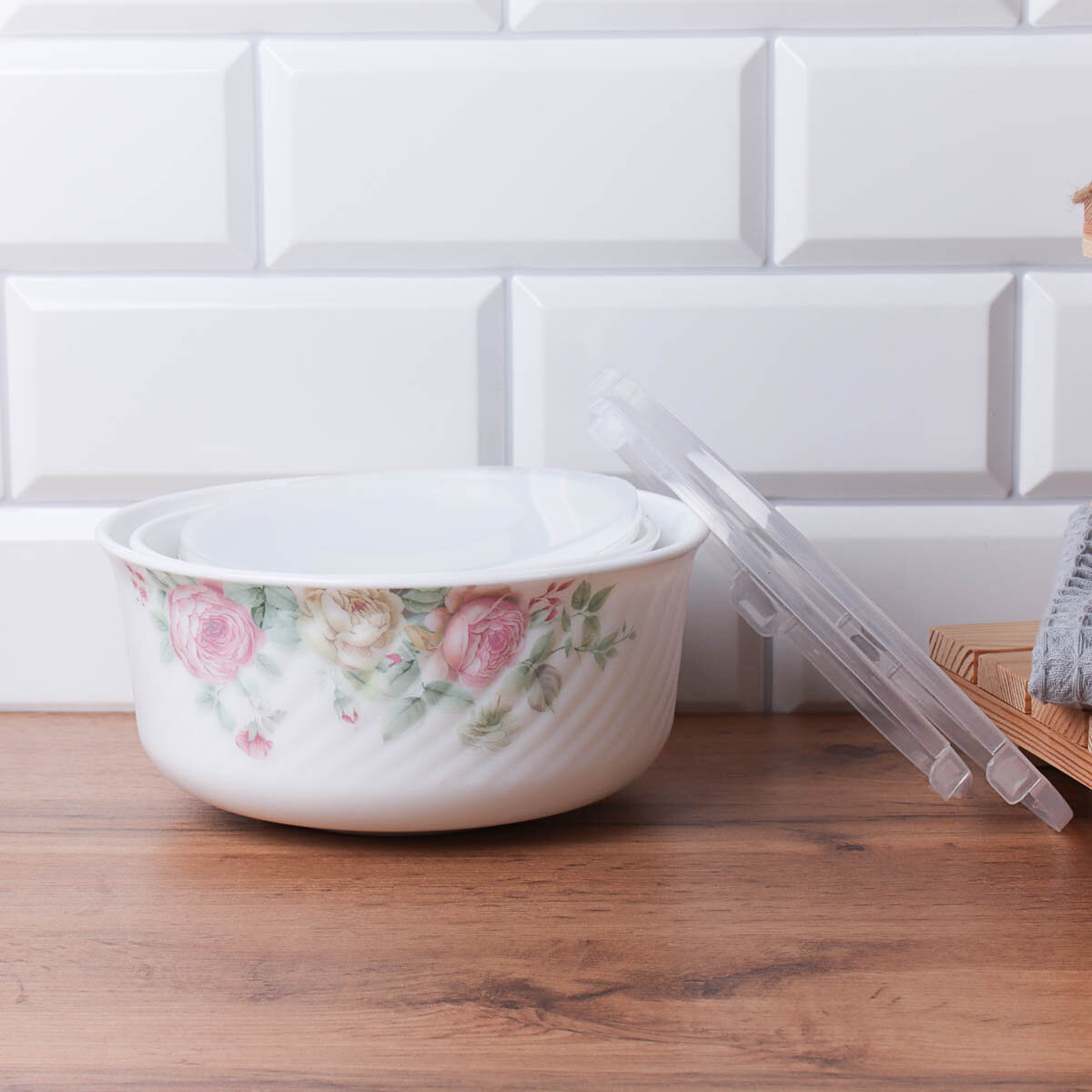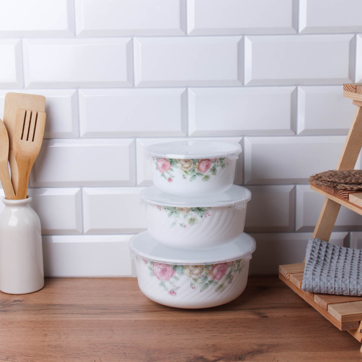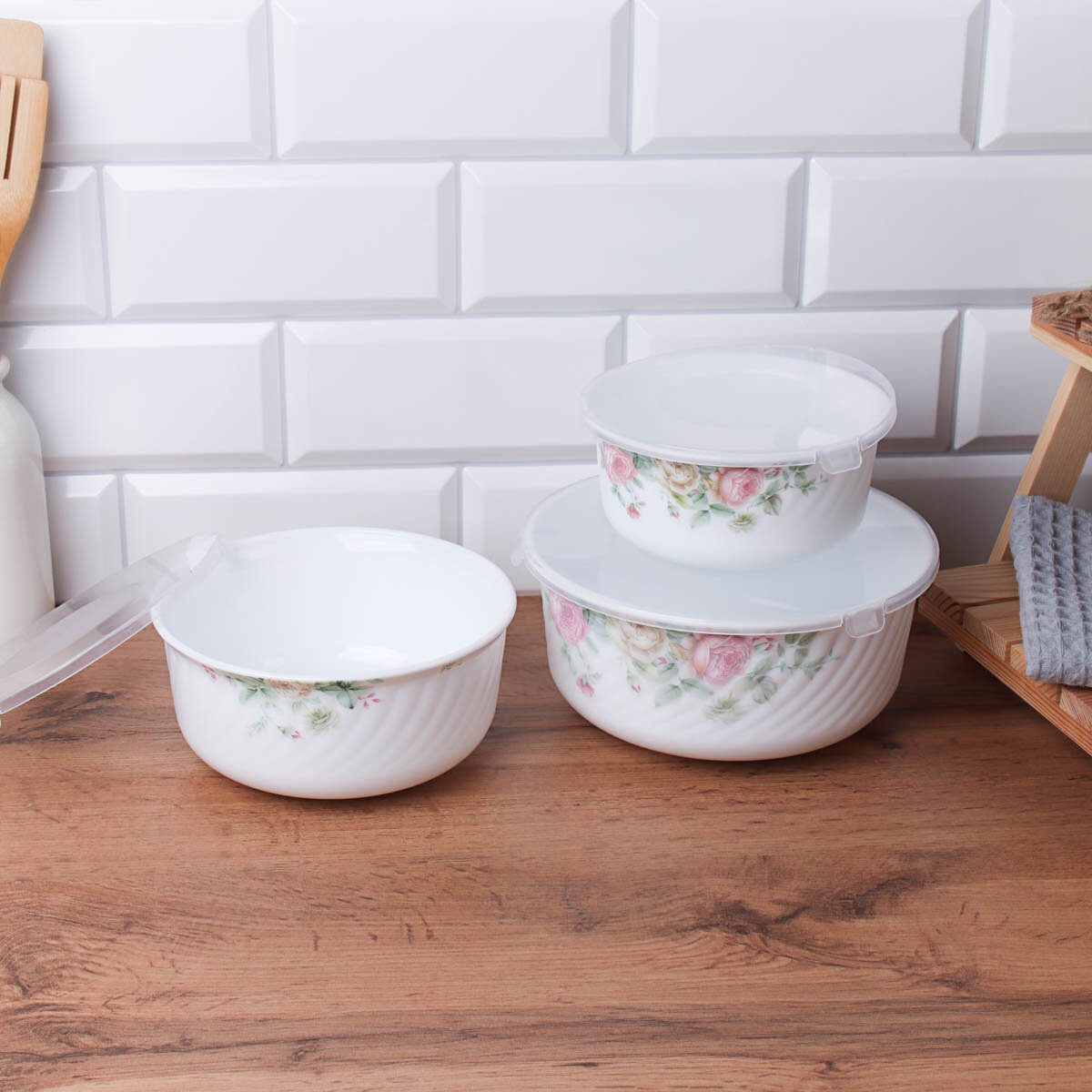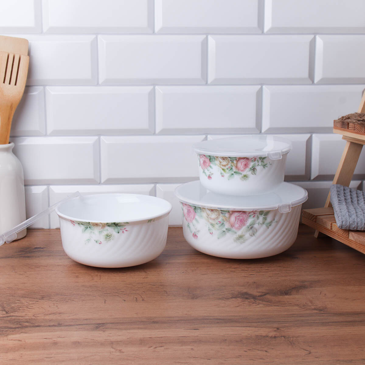 Купить Набор салатников с крышкой WHITE LILY "Кустовая роза" 3 предмета