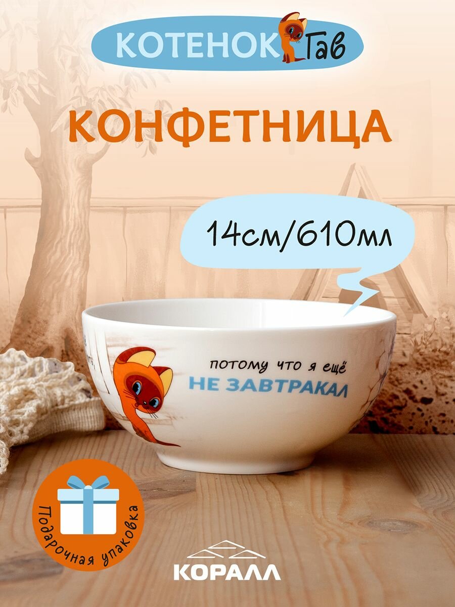 Конфетница/ салатник/ миска в подарочной упаковке 610мл/14см "Котенок Гав" Коралл. интересное: