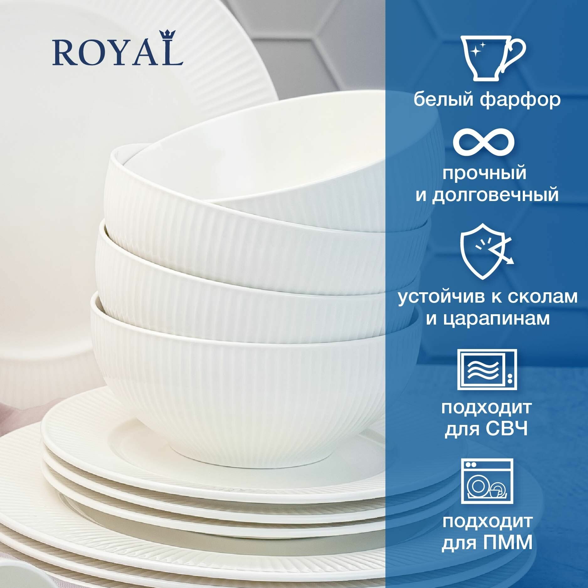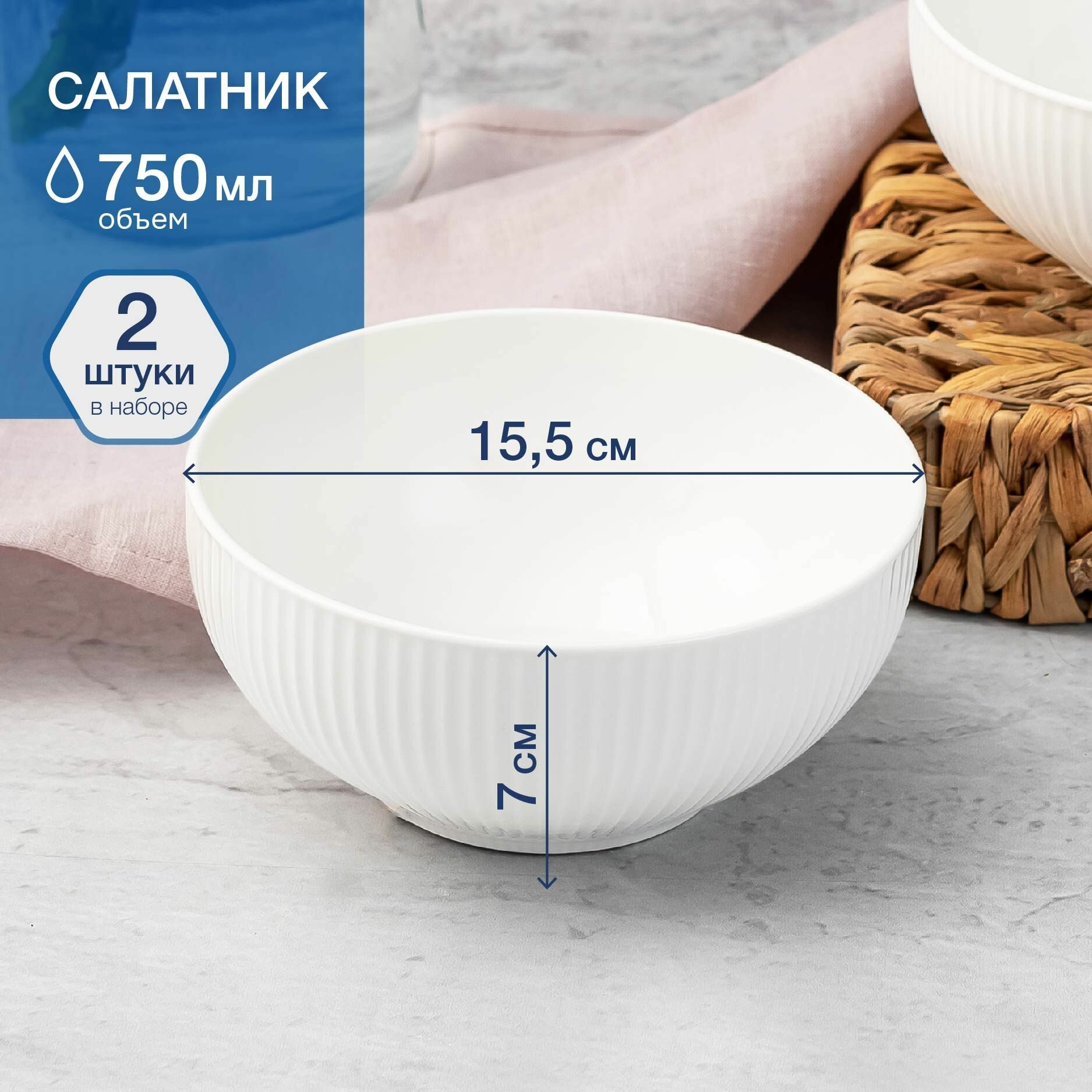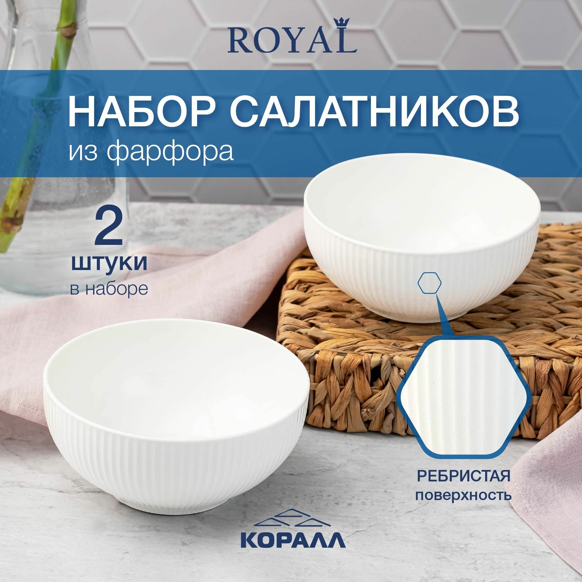 Купить Салатники набор 2 шт. салатник круглый белый 750 мл/15,5 см Royal фарфор