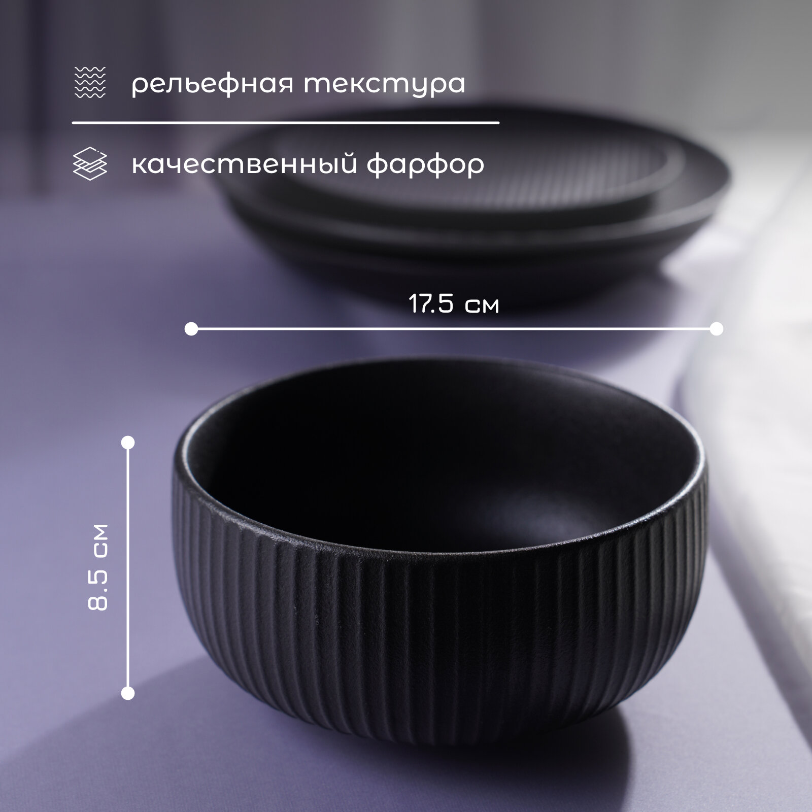 Набор салатников фарфоровых Magistro Lofty, 2 предмета: 300 мл, d=12 см, цвет черный