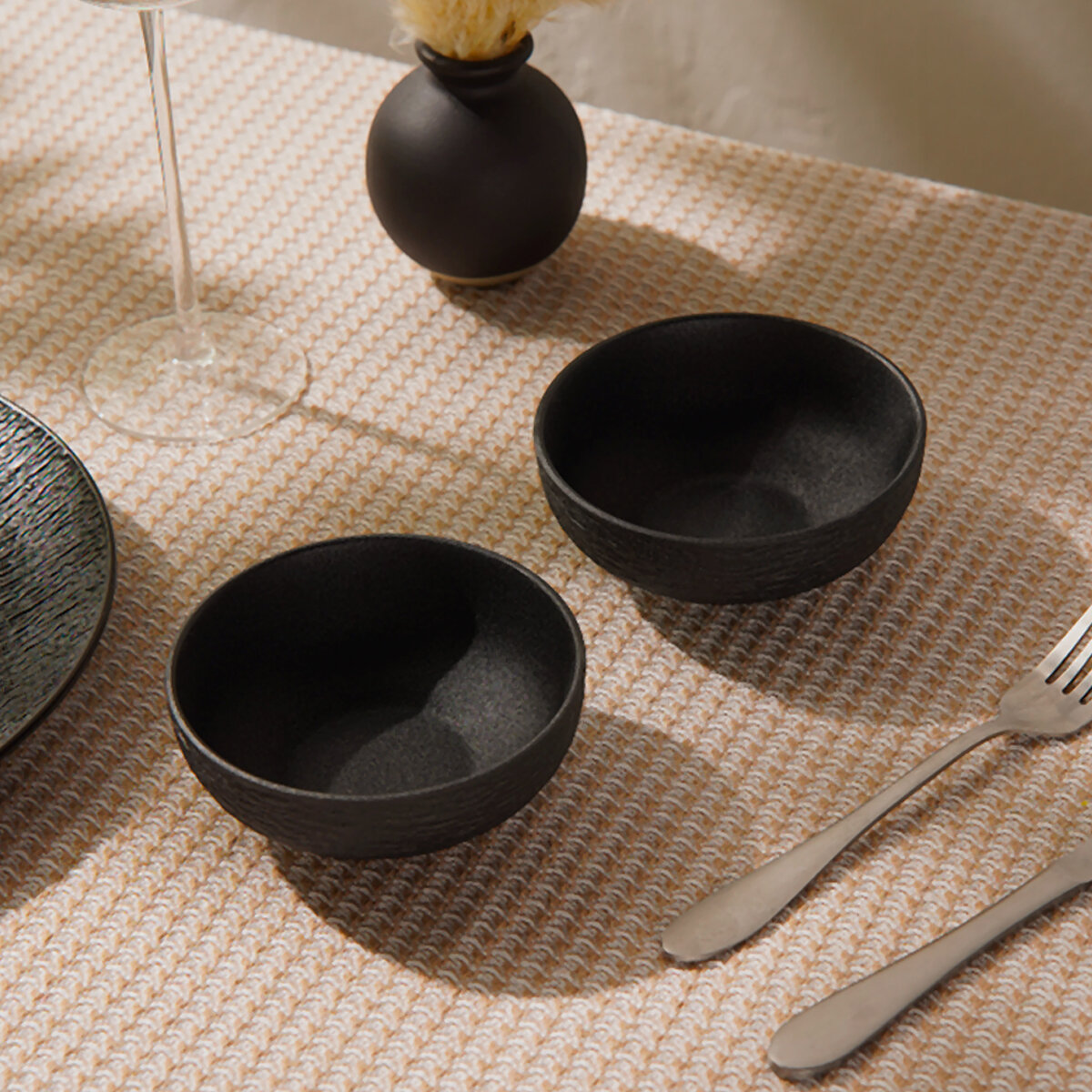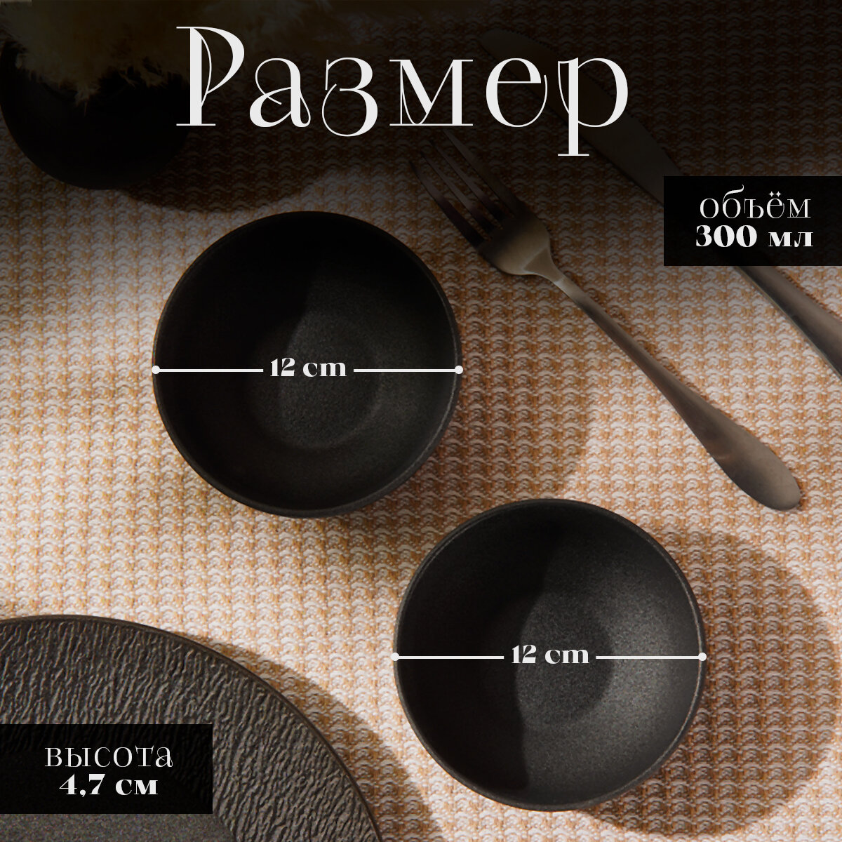 Салатник Magistro Carbon, набор 2 шт, для подачи, фарфор, 12×10,5 см, цвет чёрный