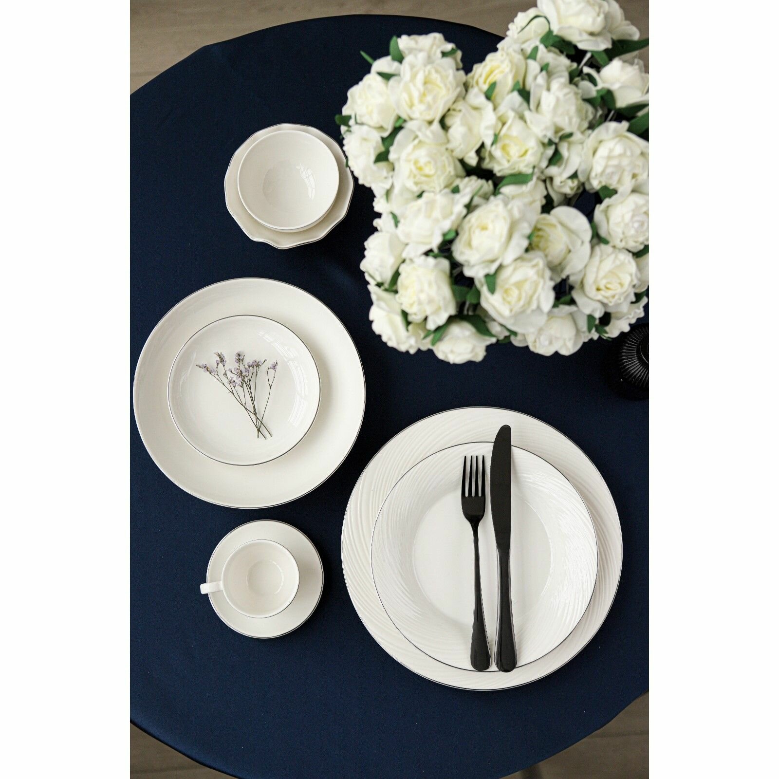 Салатник Ocean, 800 мл, d=17.4 см, фарфор, синий, белый, форма: ассиметричная