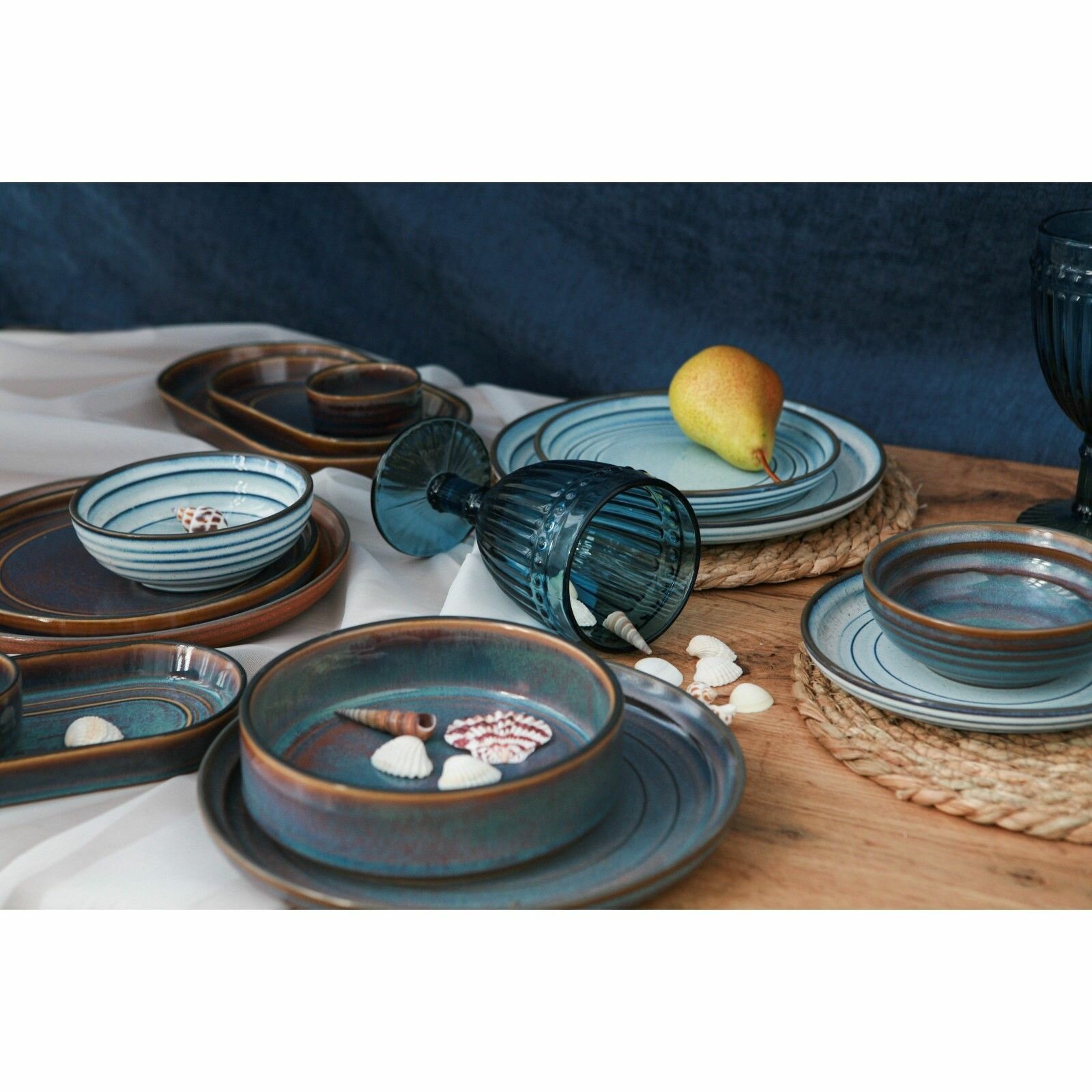Салатник Ocean, 800 мл, d=17.4 см, фарфор, синий, белый, форма: ассиметричная