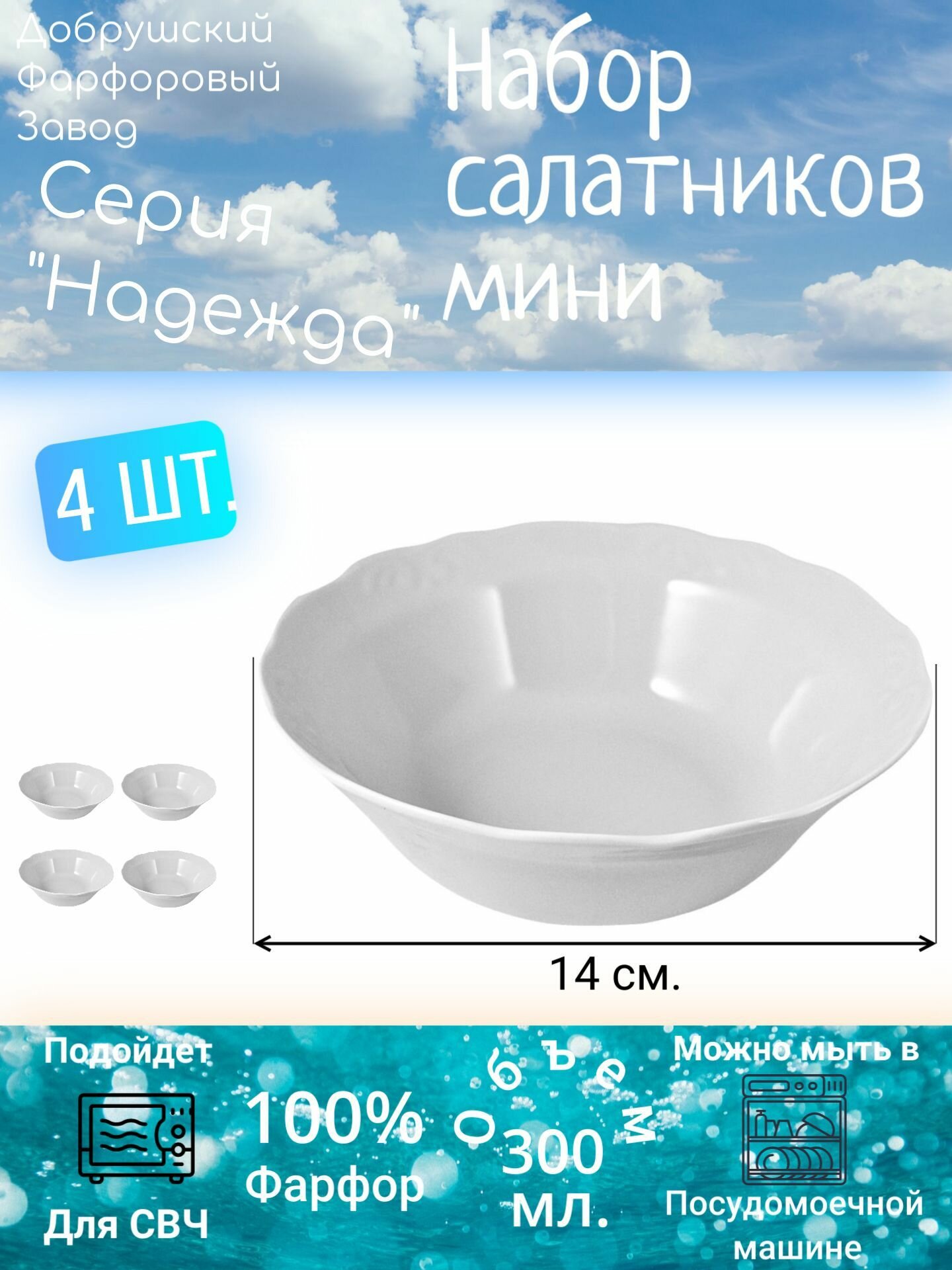 Тарелки суповые глубокие набор, миски комплект, салатник 300 мл. "Надежда", для микроволновой печи, для СВЧ - 4 шт. ; Белый цвет интересное: