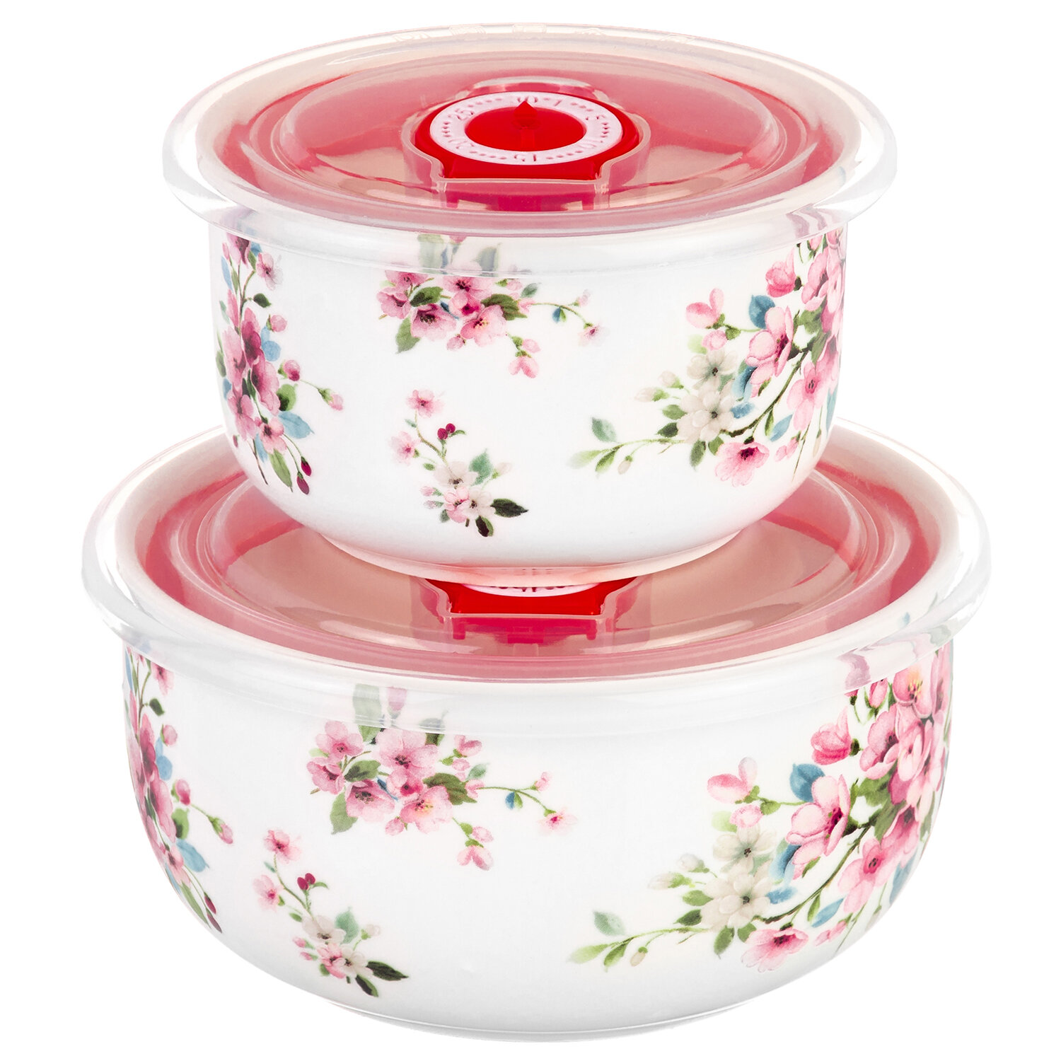 Купить Салатник, миска, контейнер с пластиковой крышкой 2 шт Elan Gallery Яблоневый цвет на белом, 560 мл, 260 мл, набор