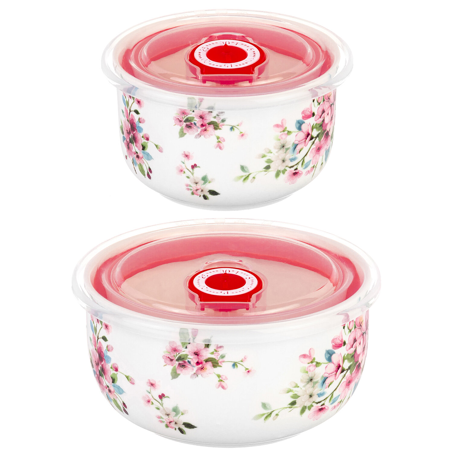 Салатник, миска, контейнер с пластиковой крышкой 2 шт Elan Gallery Яблоневый цвет на белом, 560 мл, 260 мл, набор интересное: