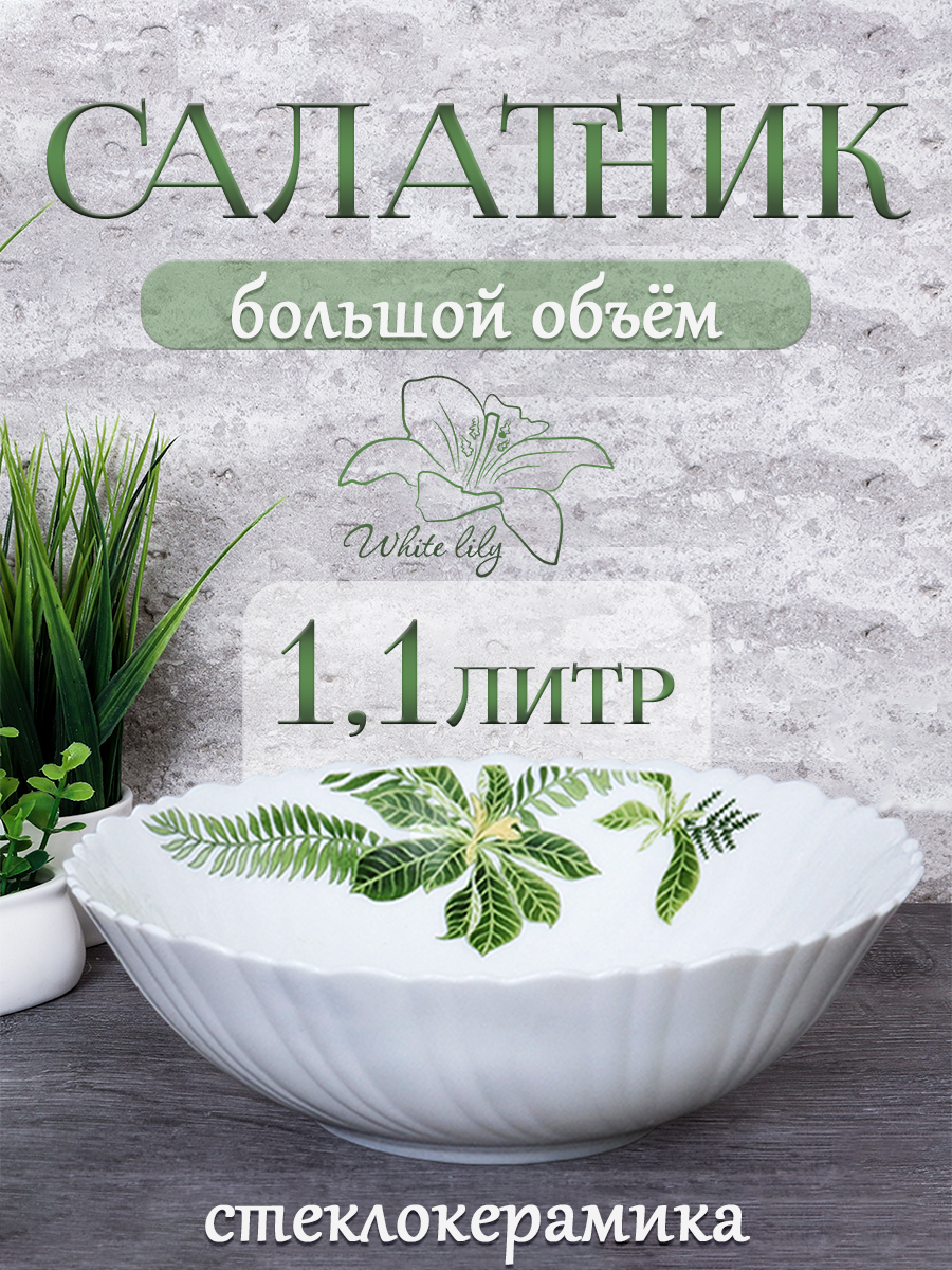 Купить Салатник WHITE LILY "Тропики", стеклокерамика, 1100мл, 20см, универсальный дизайн