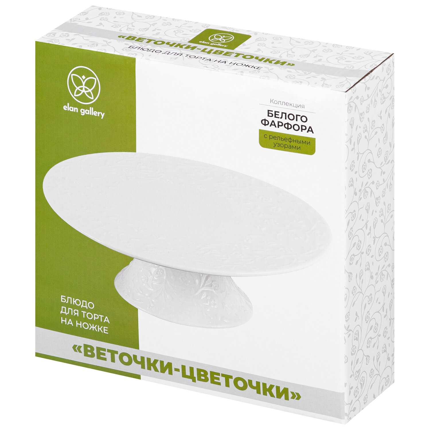 Купить Подставка под торт, тортовница на ножке 25,5х25,5х8 см Elan Gallery Веточки-цветочки