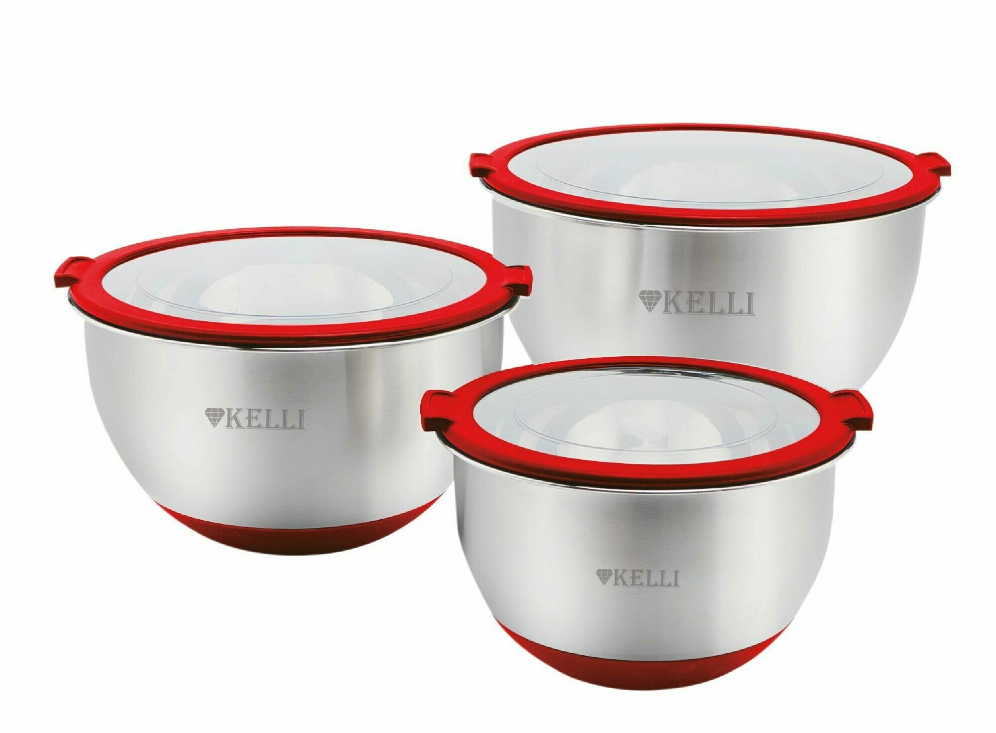 Набор салатников с крышками для хранения и смешивания 3 шт набор мисок из нержавеющей стали
