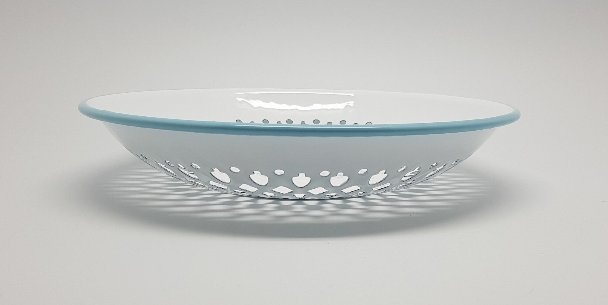 Фруктовница-тарелка, эмалированная, 25см, белая с голубым, круглая интересное: