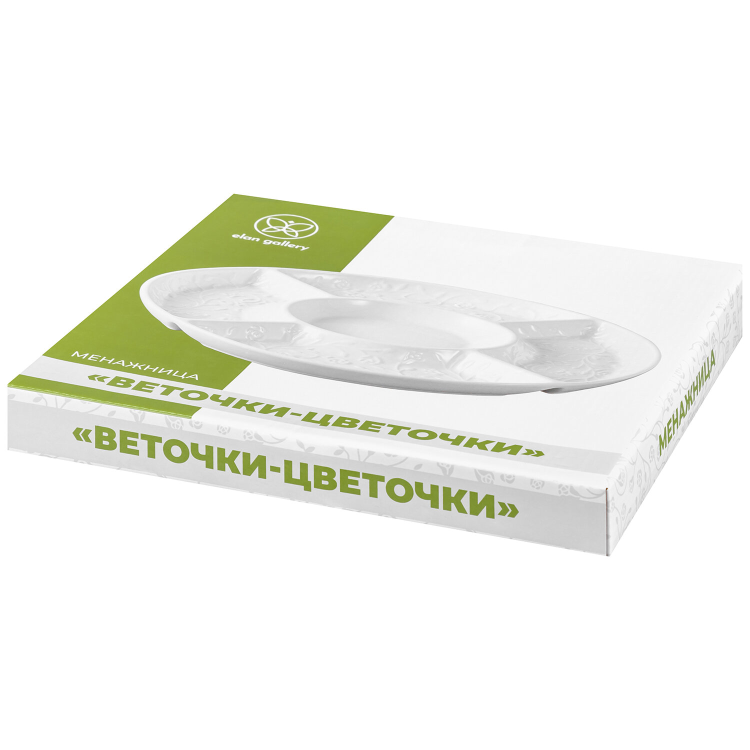 Купить Блюдо - менажница Elan Gallery "Веточки-цветочки" 26*26*2,5 см, цельная, 5 секций