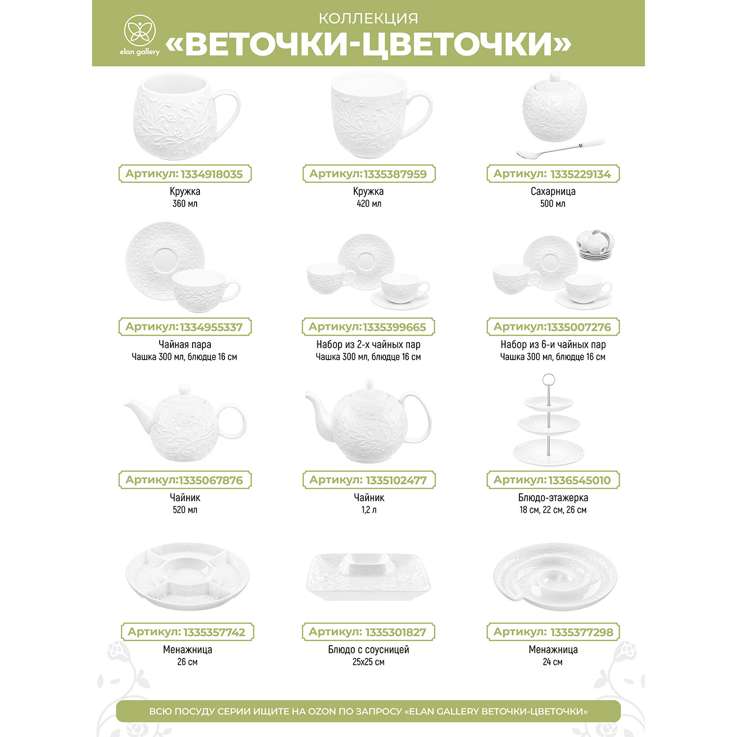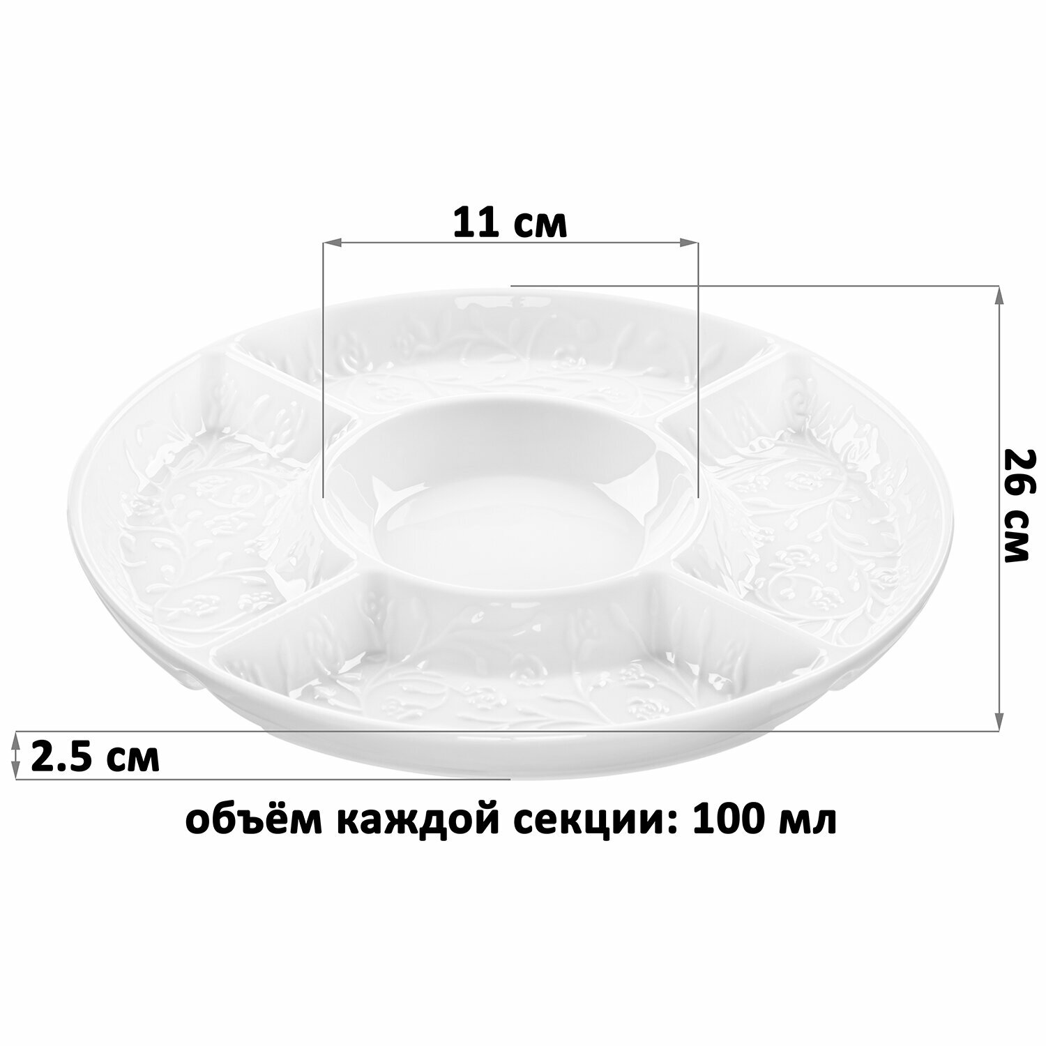 Блюдо - менажница Elan Gallery "Веточки-цветочки" 26*26*2,5 см, цельная, 5 секций интересное: