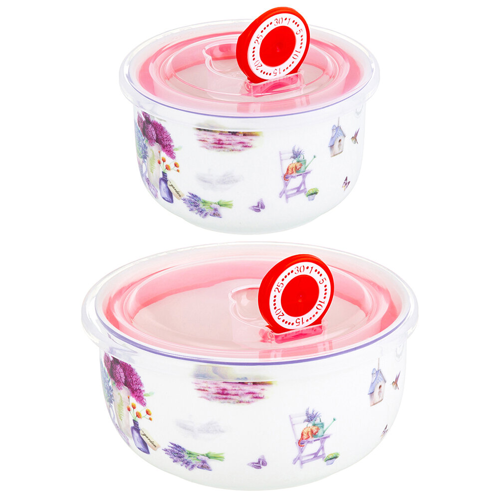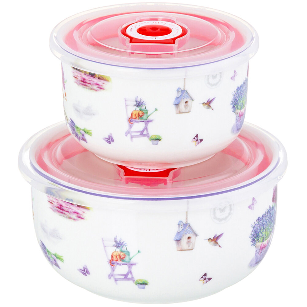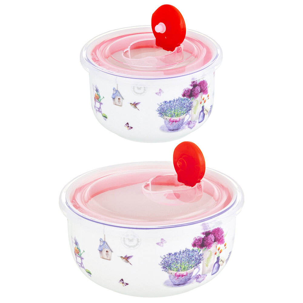 Купить Салатник, миска, контейнер с пластиковой крышкой 2 шт Elan Gallery "Лаванда" 560 мл, 260 мл, Elan Gallery, набор