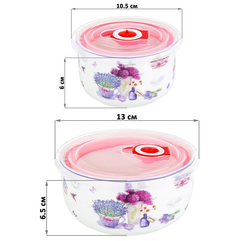 Салатник, миска, контейнер с пластиковой крышкой 2 шт Elan Gallery "Лаванда" 560 мл, 260 мл, Elan Gallery, набор интересное: