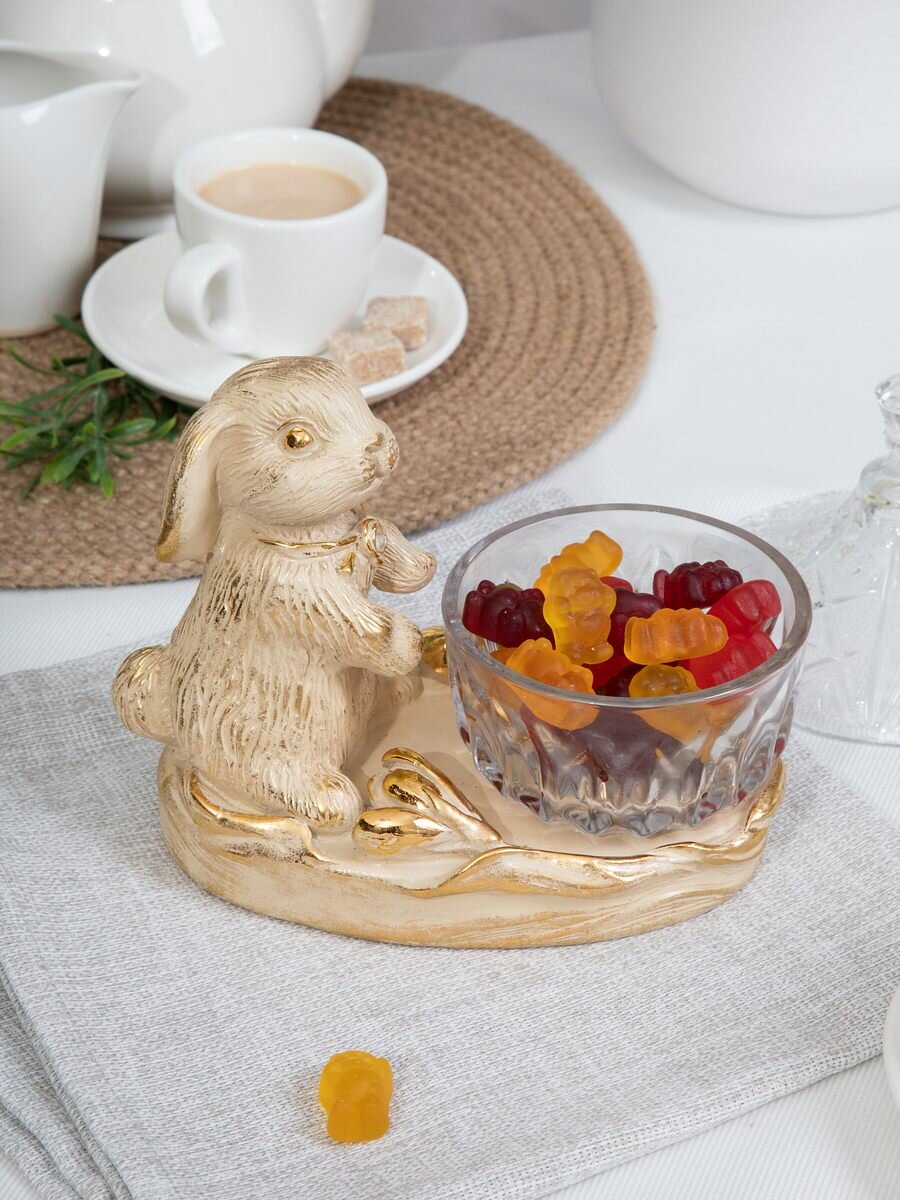 Купить Фруктовница-конфетница BOGACHO ваза для фруктов Кролик Эйприл кремовая