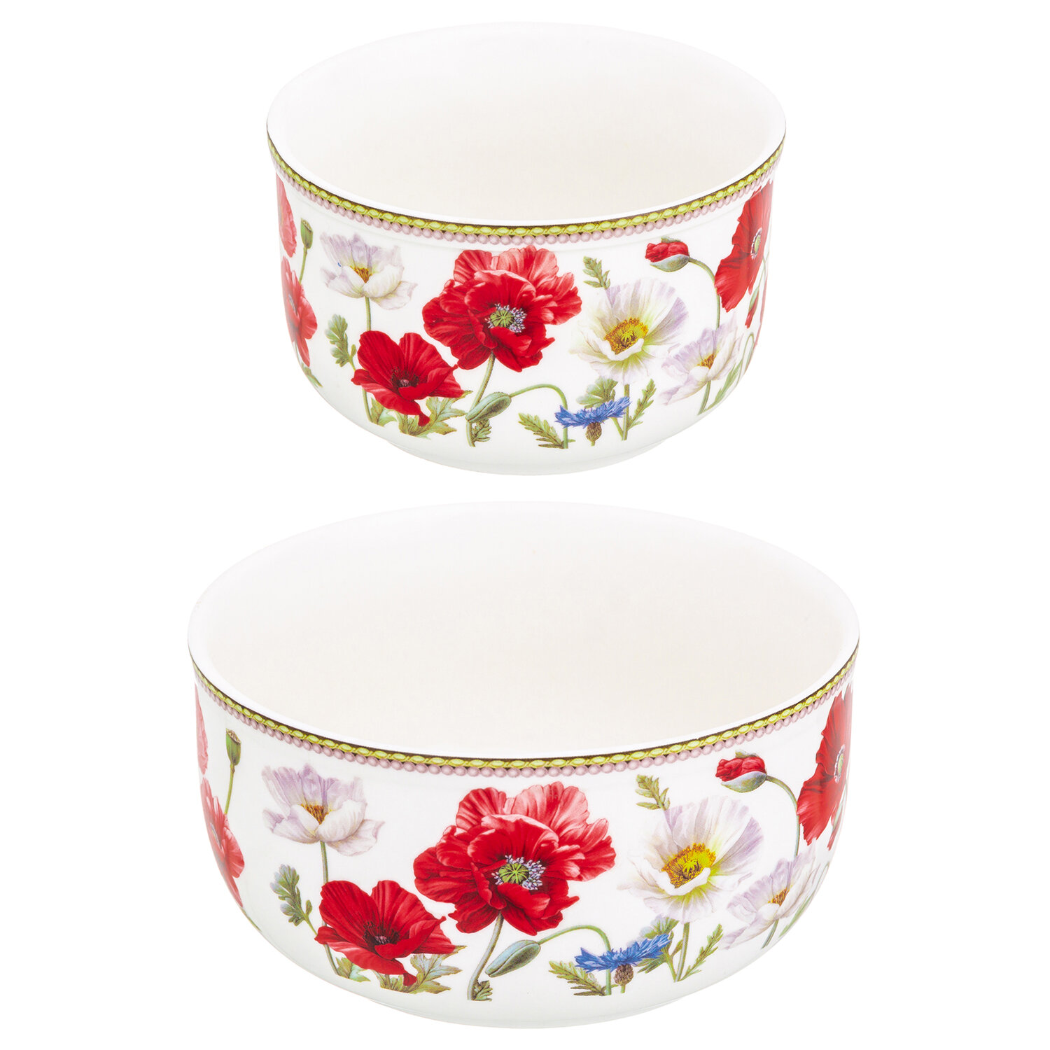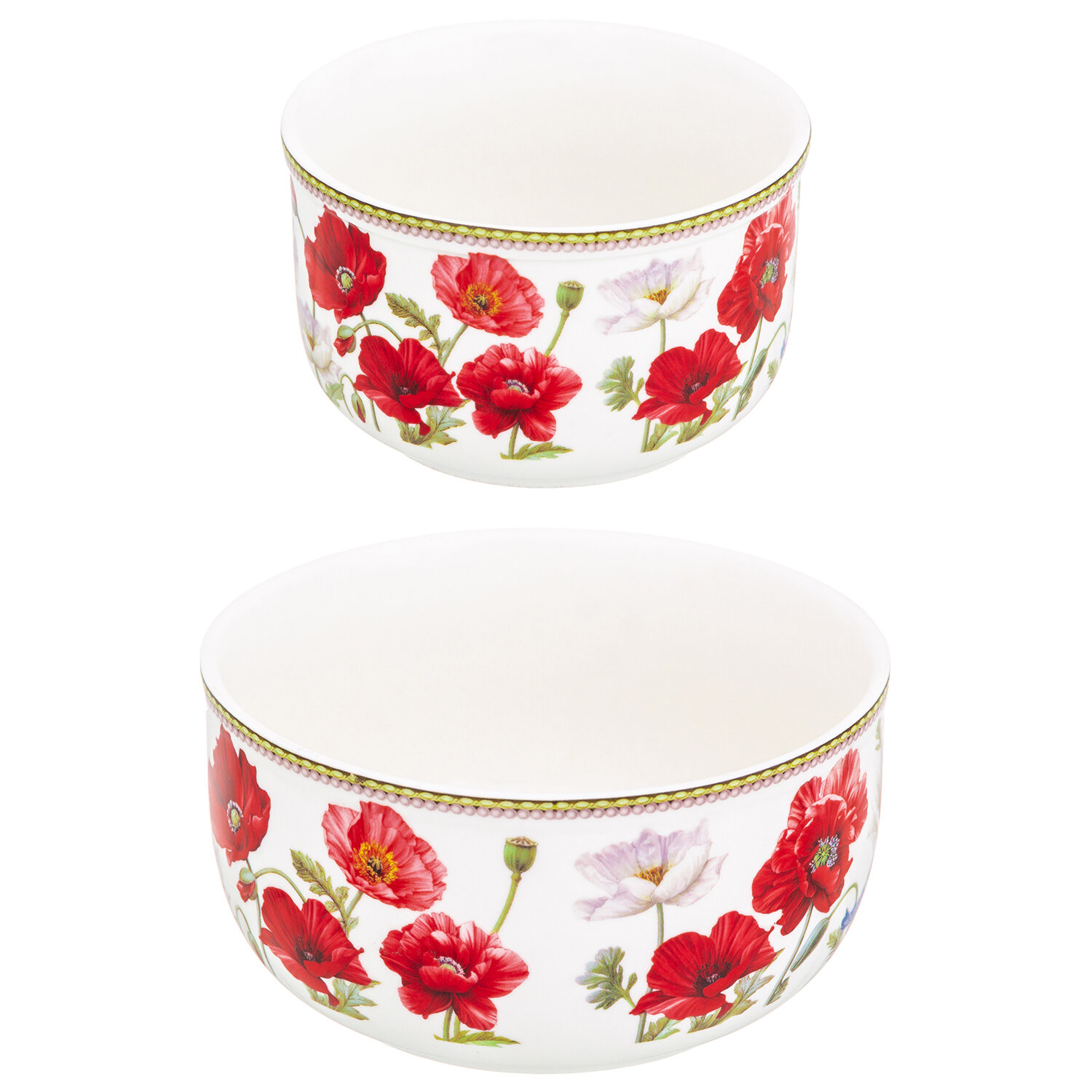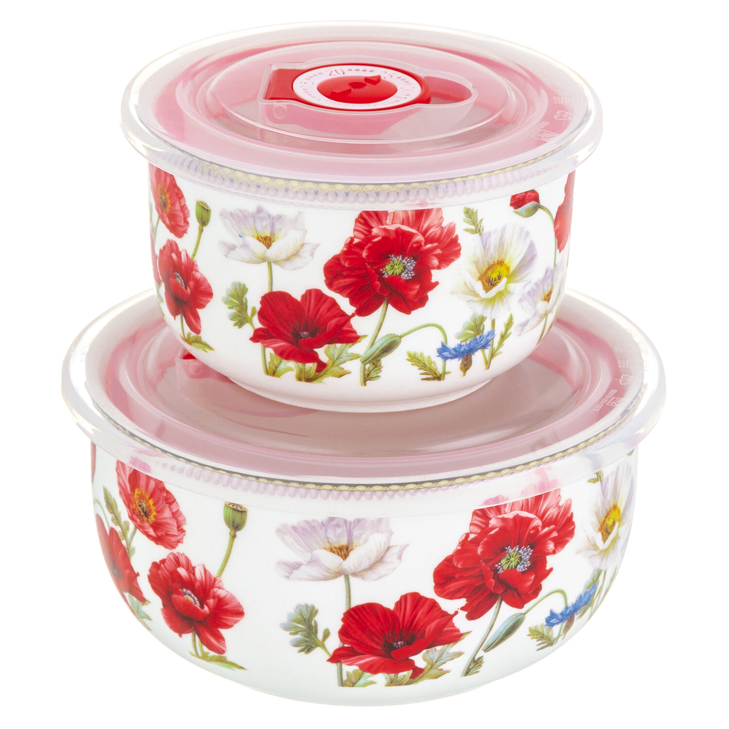 Купить Салатник, миска, контейнер с пластиковой крышкой 2 шт Elan Gallery Маки, 560 мл, 260 мл, набор