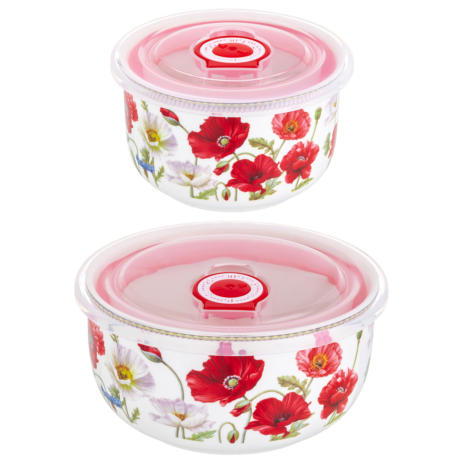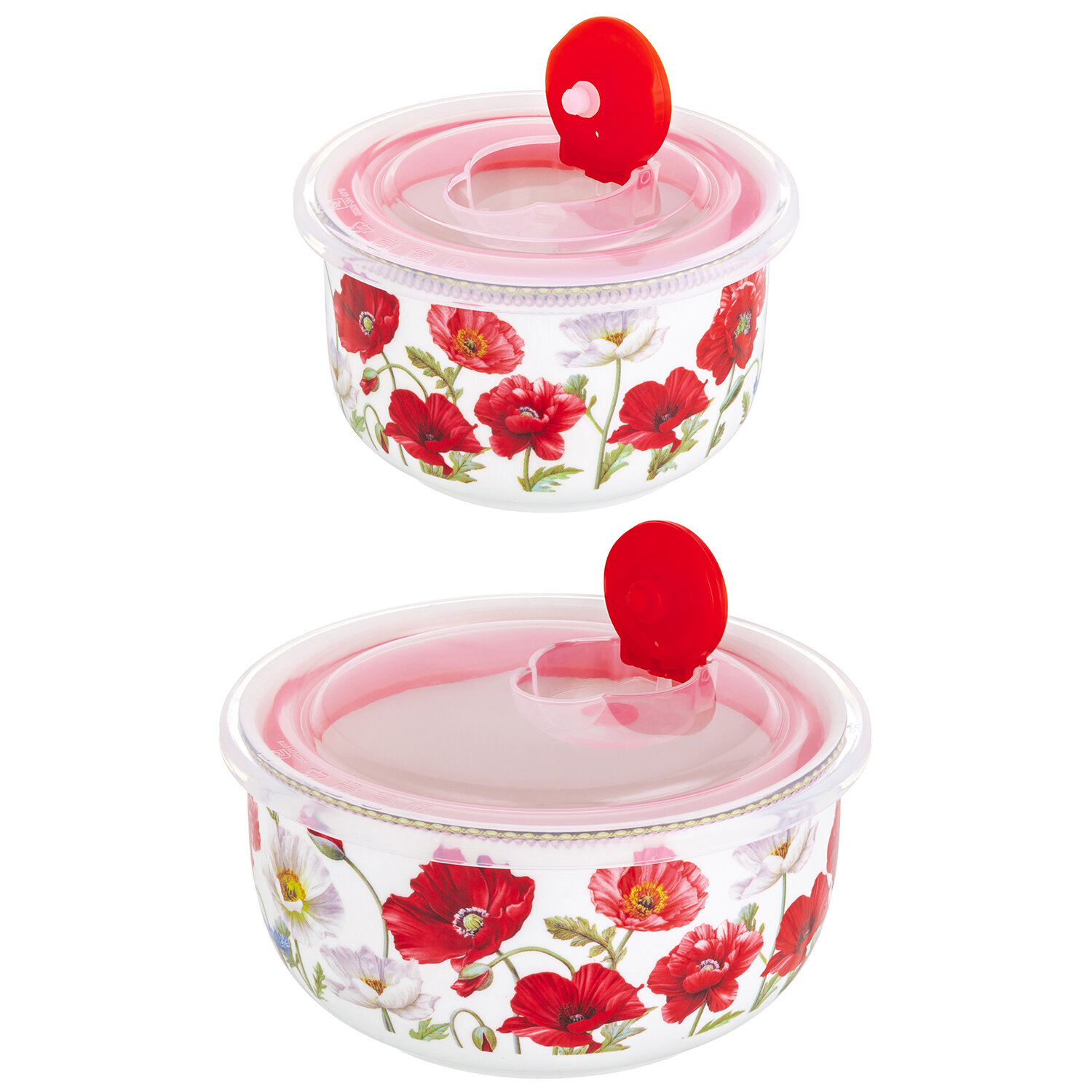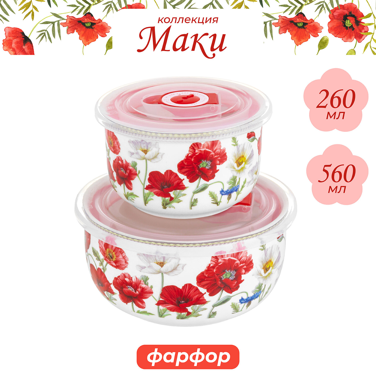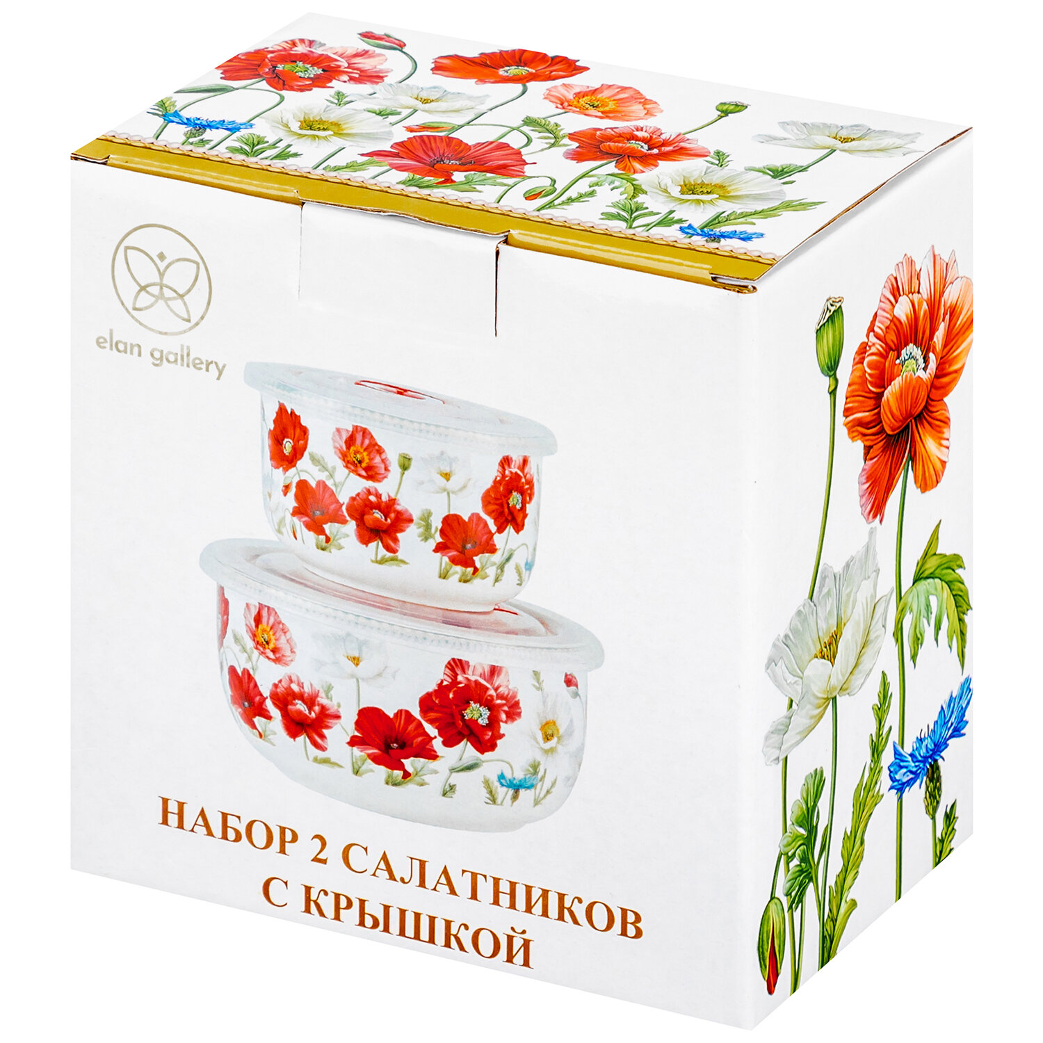 Салатник, миска, контейнер с пластиковой крышкой 2 шт Elan Gallery Маки, 560 мл, 260 мл, набор интересное: