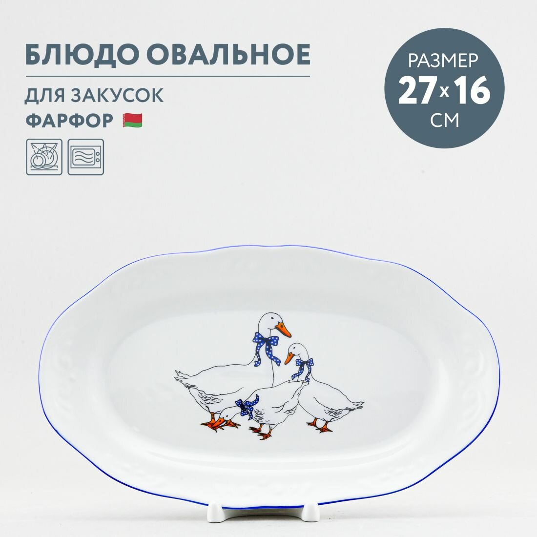 Блюдо сервировочное овальное 27 х 16 см Добрушский фарфор Гуси интересное: