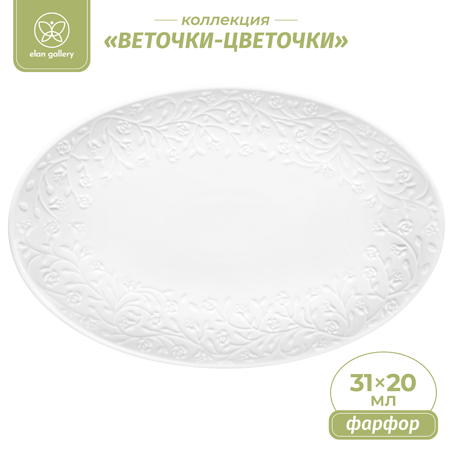 Блюдо овальное 31*20,5*2,5 см Elan Gallery "Веточки-цветочки" малое интересное: