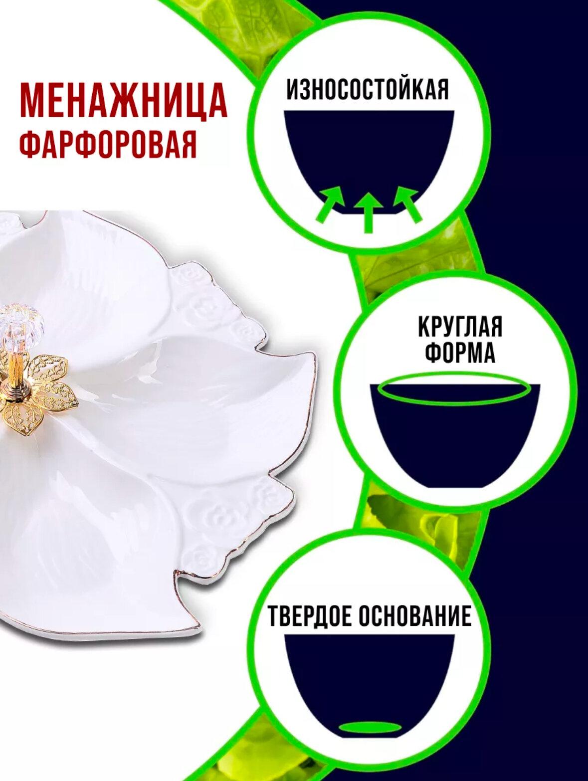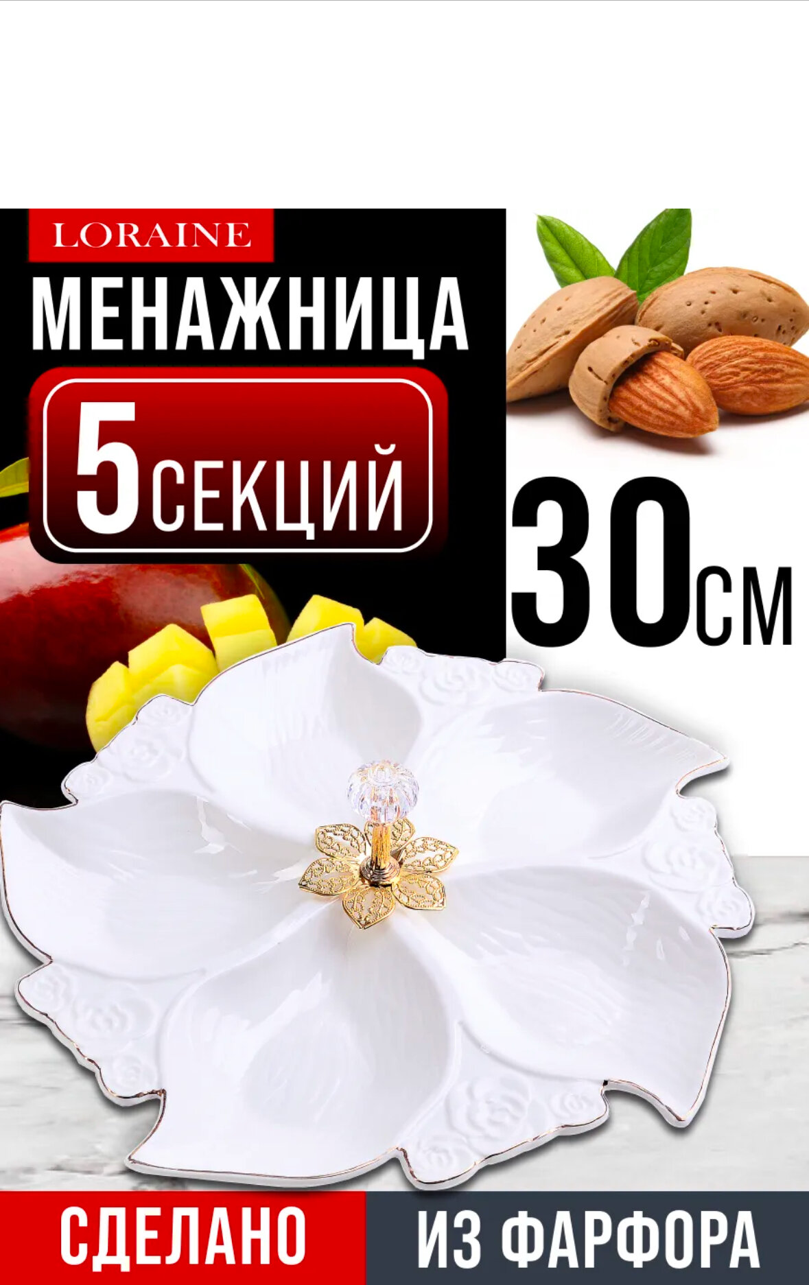 Менажница, фарфор, 5 секций, с ручкой, для сервировки, подарочная упаковка, 30 см интересное:
