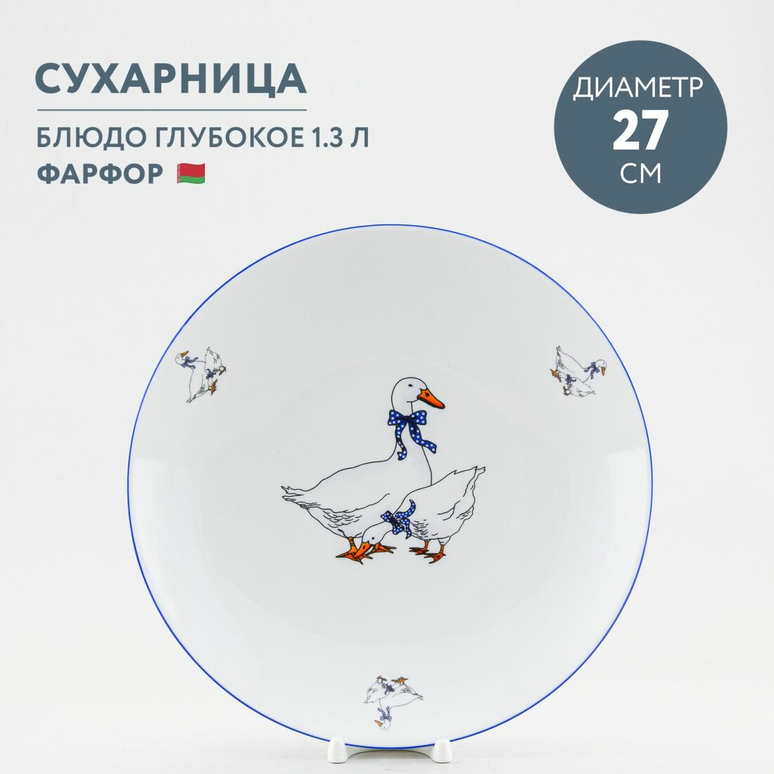 Купить Блюдо глубокое круглое 27 см сухарница Добрушский фарфор Гуси
