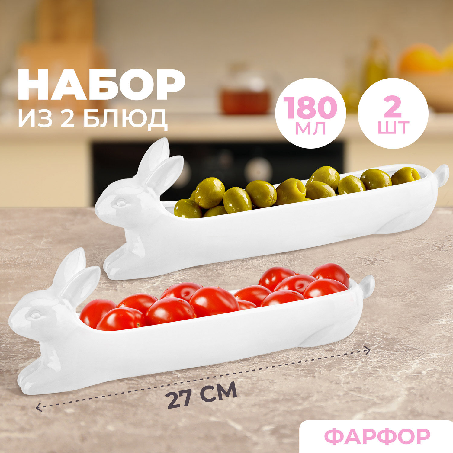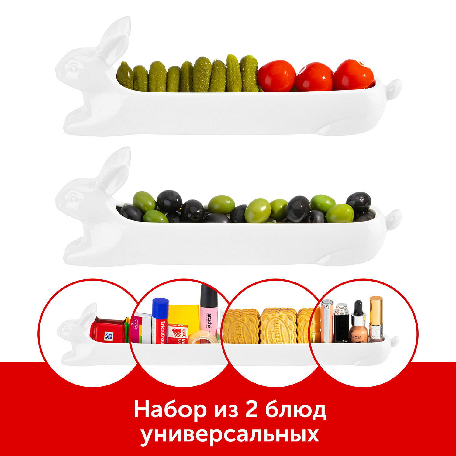 Блюдо сервировочное 2 предмета Elan Gallery Кролики, 27х4,8х8,8 см, набор интересное: