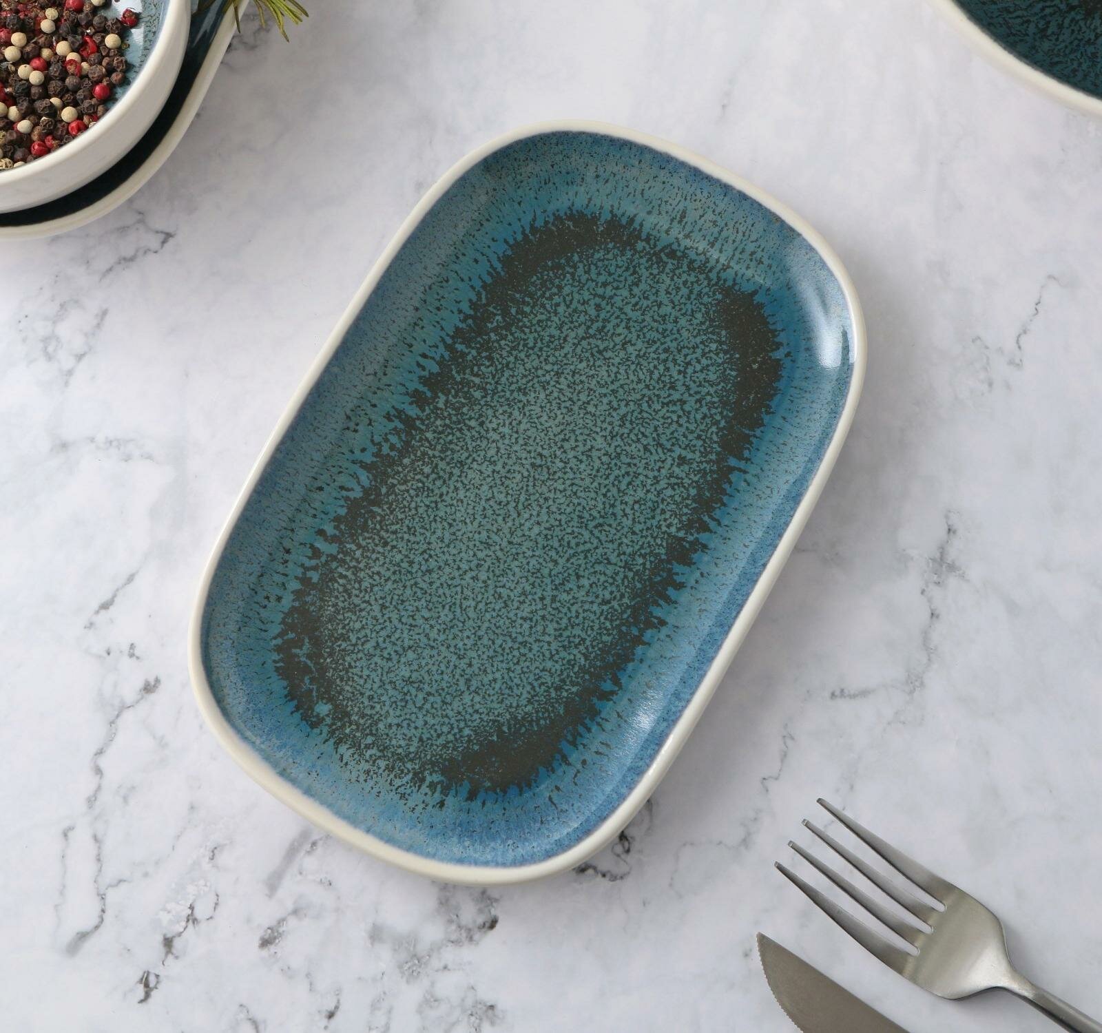 Купить Блюдо фарфоровое для подачи Magistro Ocean, 20×13 см, цвет синий, 5457039